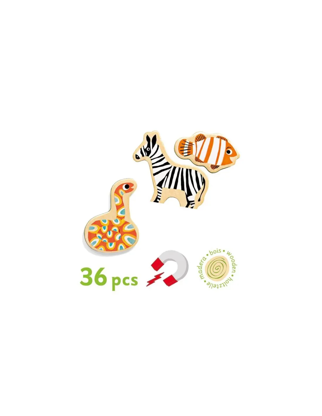 Découvrez Magnetic’s Magnimo de Djeco, un coffret de magnets en bois représentant des animaux, un jeu ludique pour les enfants à partir de 2 ans.