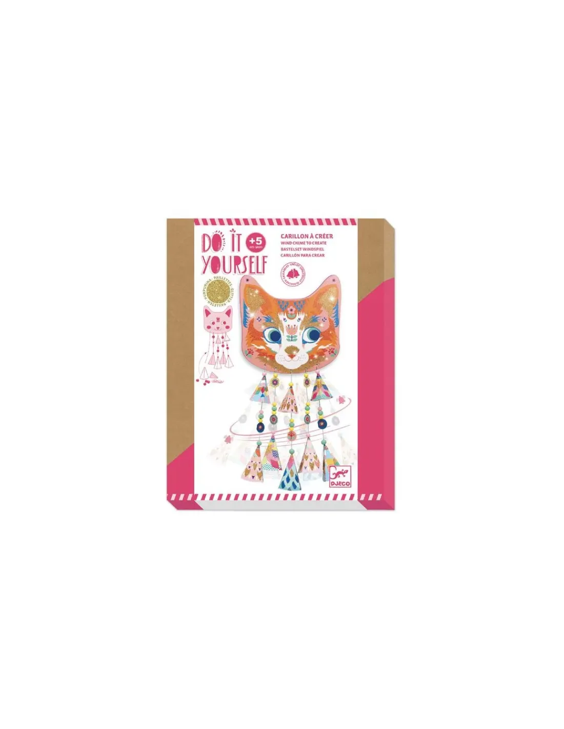 Découvrez le carillon à créer Kitty de la collection Do It Yourself de Djeco, un coffret créatif pour les enfants à partir de 5 ans qui vont avoir la fierté de voir leur réalisation se transformer en un véritable objet de décoration orné de paillettes.