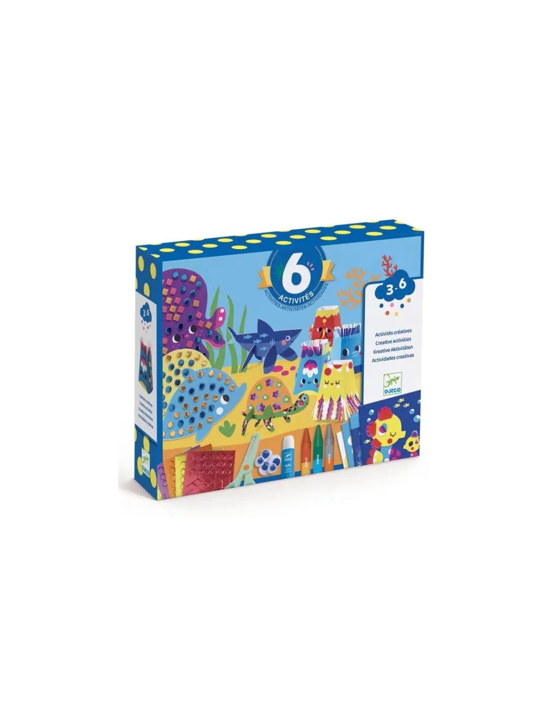 Découvrez le coffret La mer et ses plaisirs 6 activités créatives de Djeco, un coffret de loisirs créatifs avec des heures de créations pour les enfants de 3 à 6 ans.