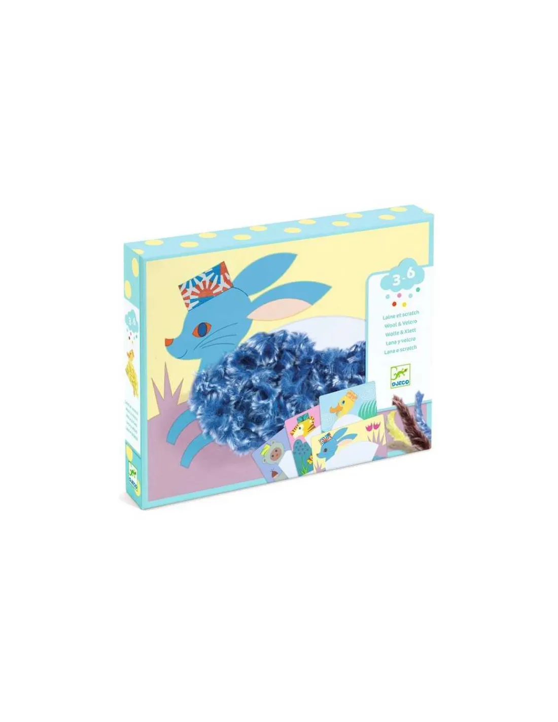 Une activité créative rapide et amusante, toute douce comme un doudou! L’enfant crée d’adorables animaux en utilisant des brins de laine douce à poser sur des zones Velcro auto-agrippantes. Le coffret comprend 4 planches avec zones auto-agrippantes et 4 couleurs de laine duveteuse. Les brins de laine offrent une texture agréable au toucher, stimulant les sens des enfants tout en laissant place à la créativité. Chaque animal créé devient une petite œuvre tactile, agréable à regarder et à toucher.