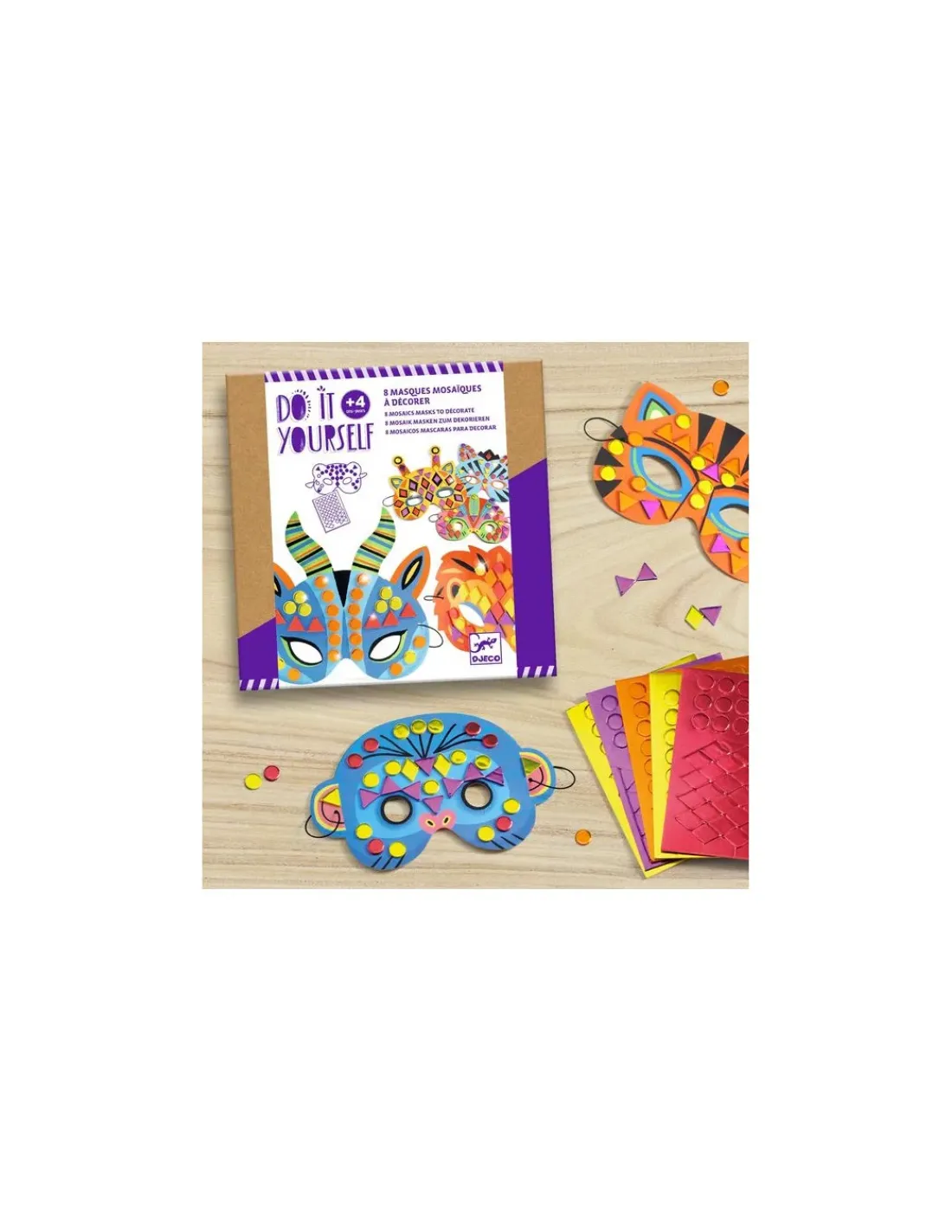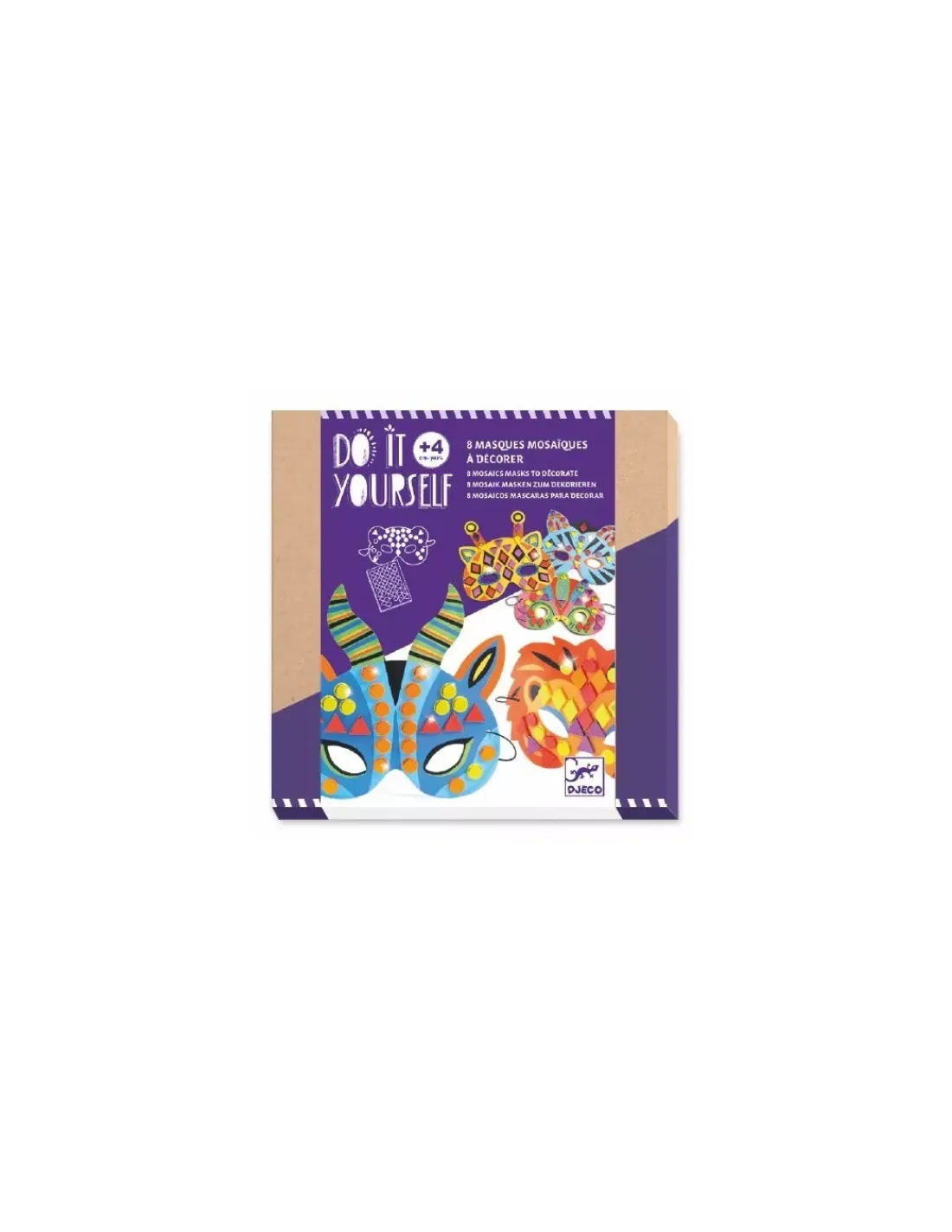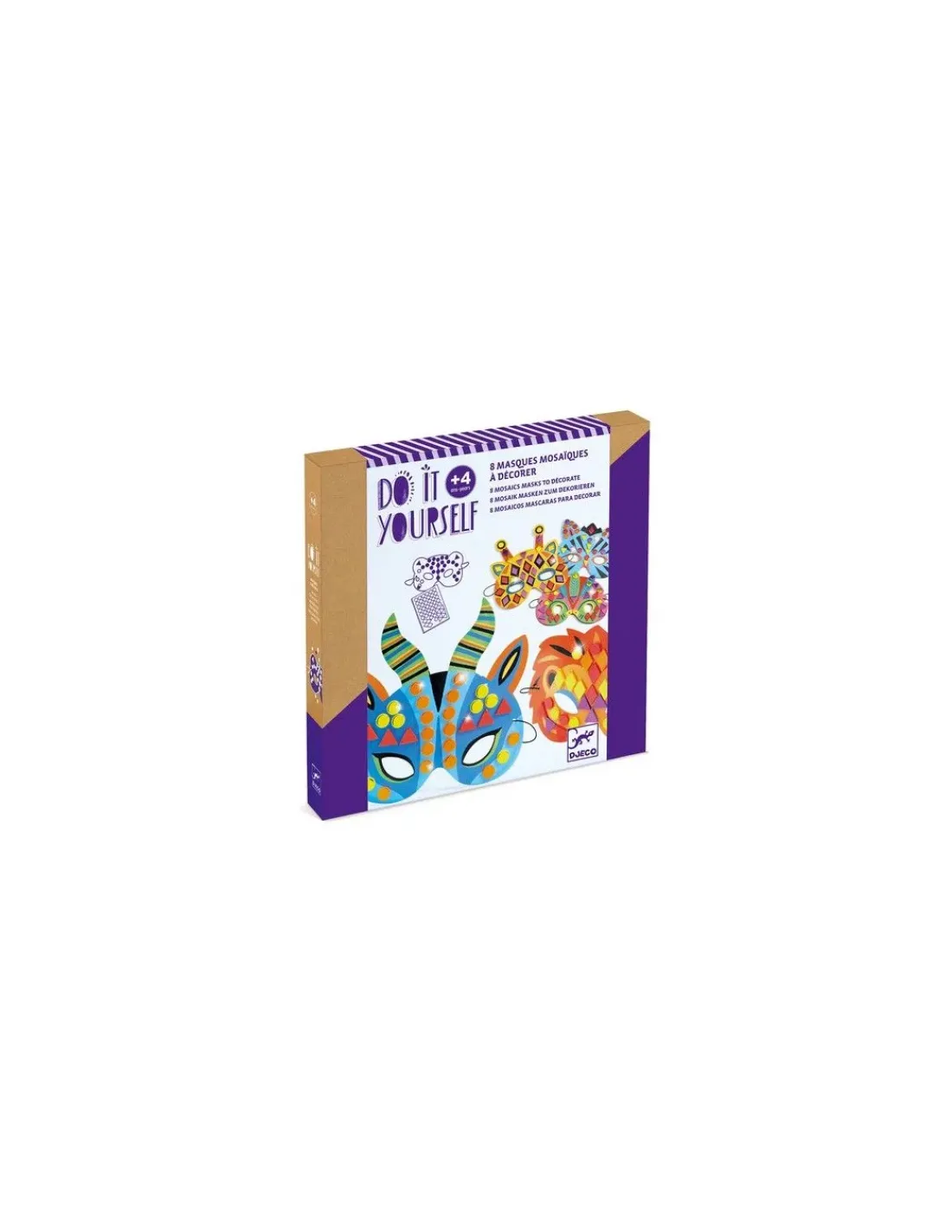 Découvrez les masques mosaïques à décorer de la collection Do It Yourself de Djeco, un coffret créatif pour les enfants à partir de 4 ans avec 8 masques d’animaux de la jungle à décorer avec de la mosaïque qui brille.
