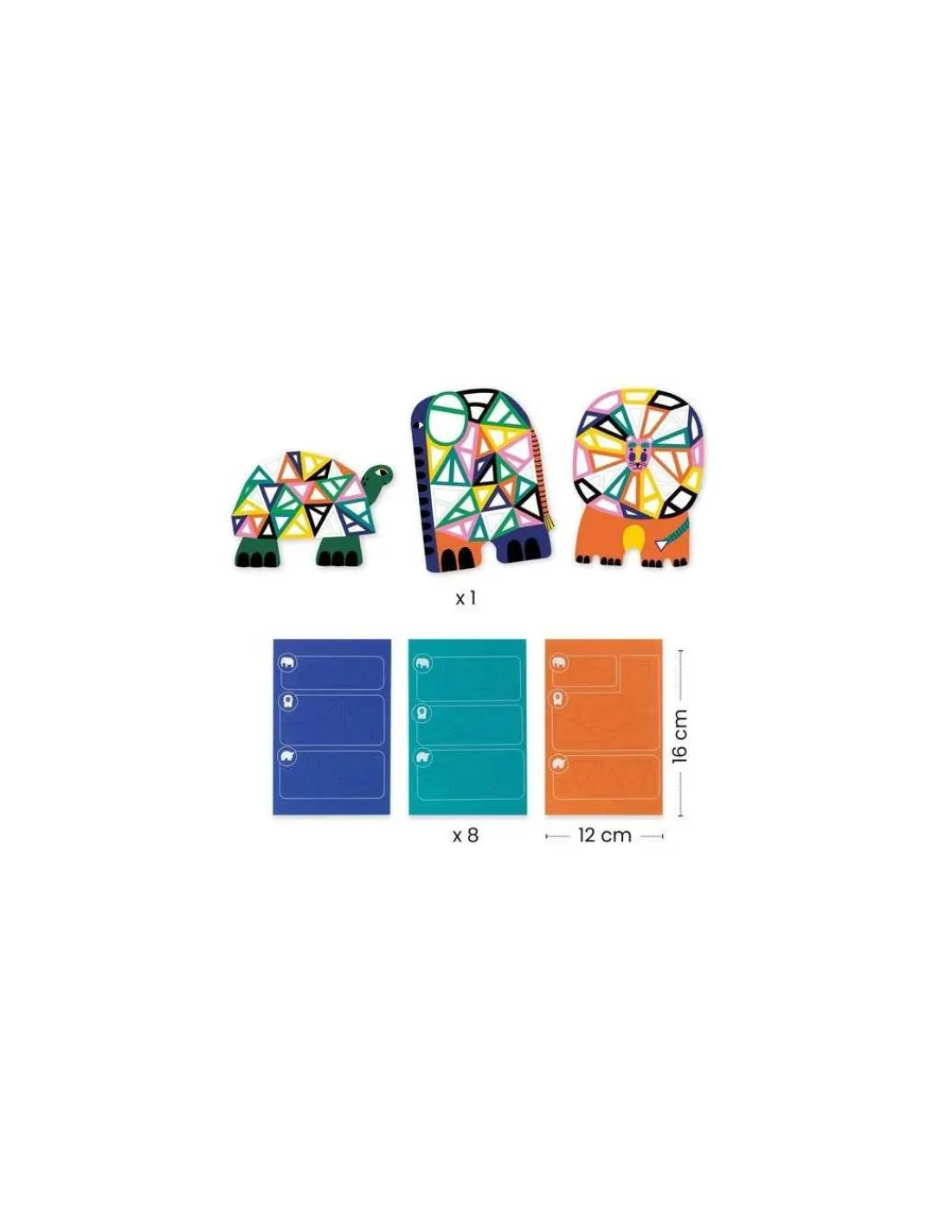 Ce coffret contient 3 animaux silhouettés, 8 planches de mosaïques et 1 livret explicatif pas-à-pas.