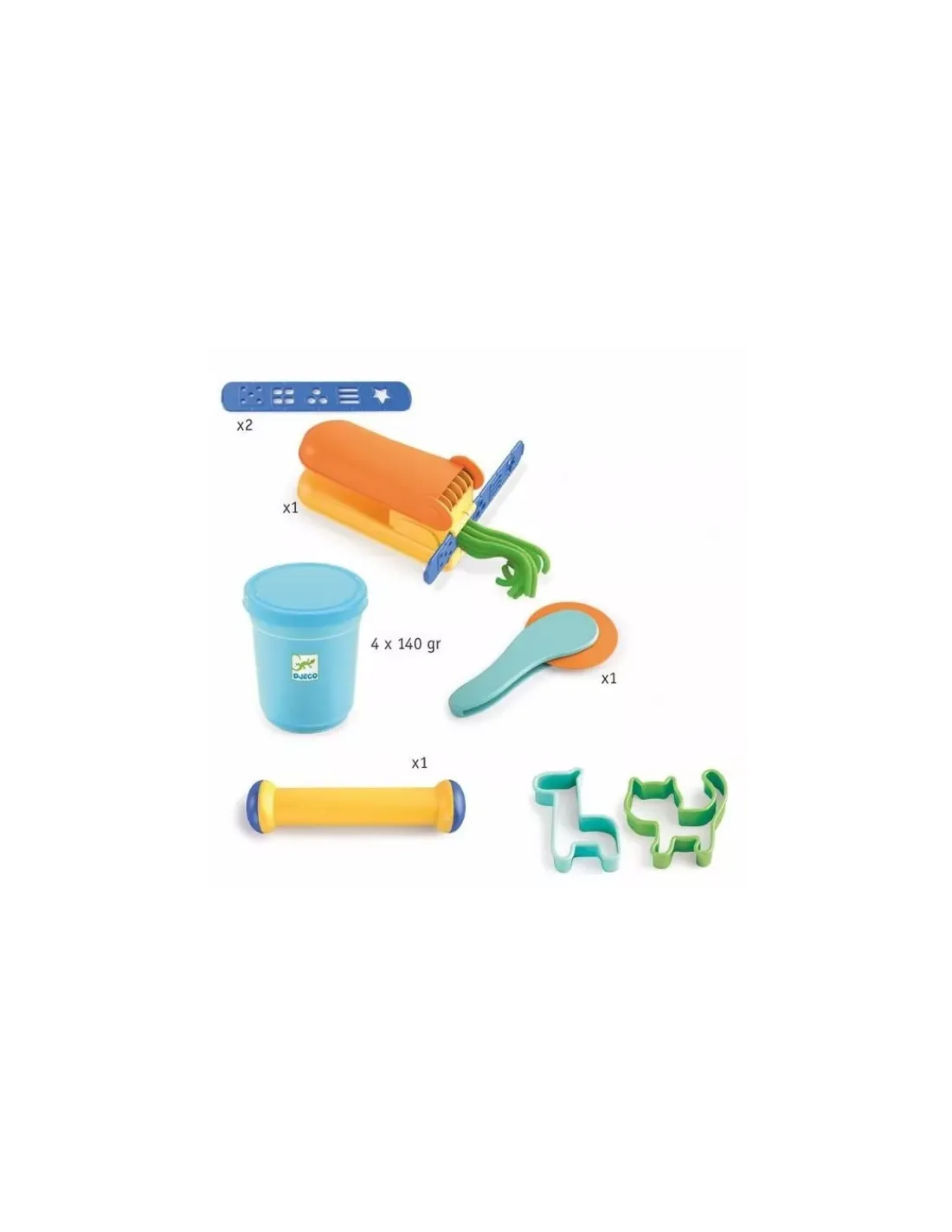 Découvrez le coffret de pâte à modeler Tout pour commencer de Djeco pour les enfants à partir de 18 mois, 4 pots de pâte à modeler et 15 outils et accessoires pour créer. Une pâte à modeler ultra souple qui ne tâche pas avec plein d’outils originaux.