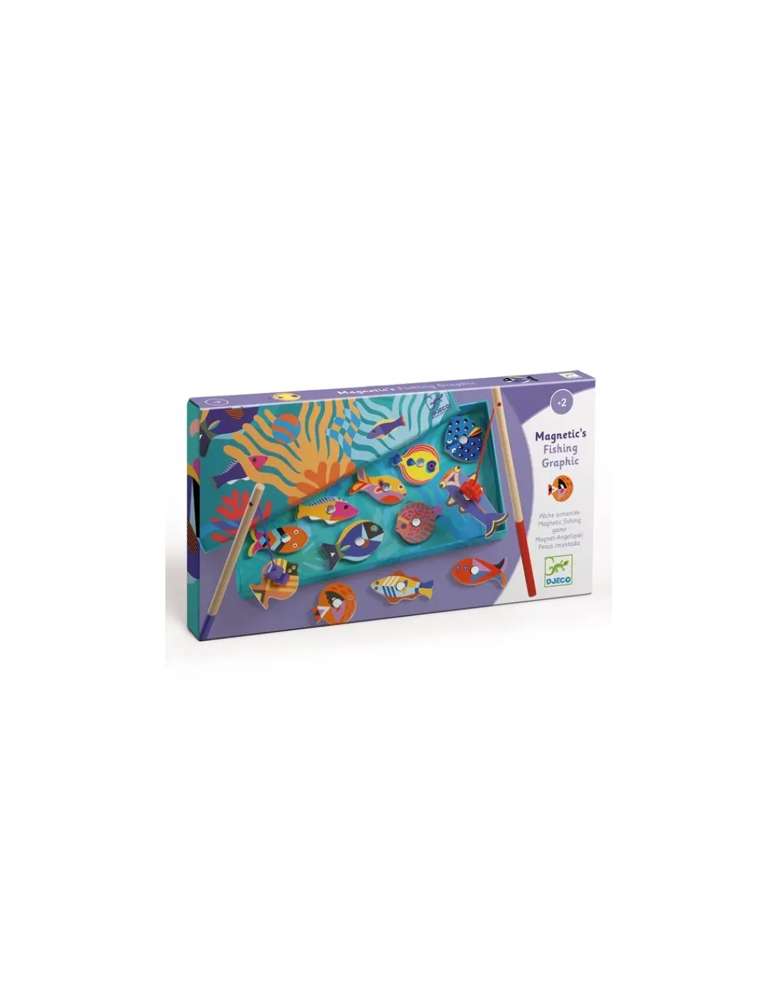 Découvrez la pêche à la ligne Fishing Graphic de Djeco, un jeu magnétique composé de 12 poissons très colorés et de 2 cannes à pêche pour les enfants dès 2 ans.