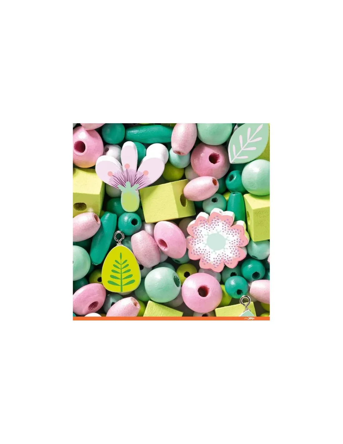 Découvrez les perles en bois feuilles et fleurs de Djeco, plus de 450 perles en bois pour réaliser des bijoux pour les enfants de 4 à 8 ans.