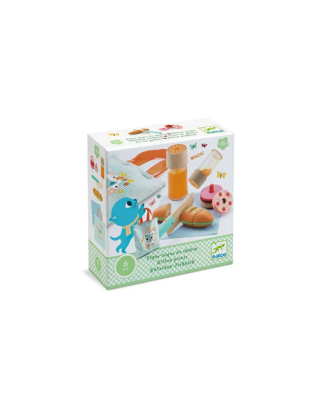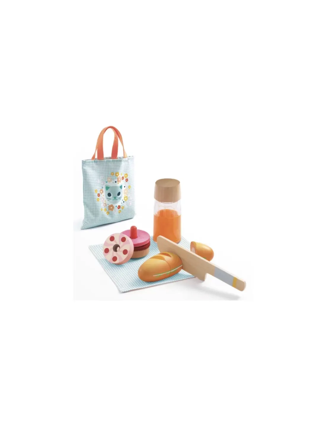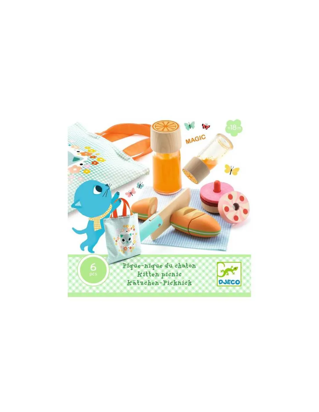 Découvrez le Pique-nique du chaton de Djeco, une magnifique dinette en bois pour les enfants dès 18 mois. Dans un joli tote bag illustré, tout le nécessaire pour éveiller les tout-petits à la préparation d’un délicieux pique-nique.