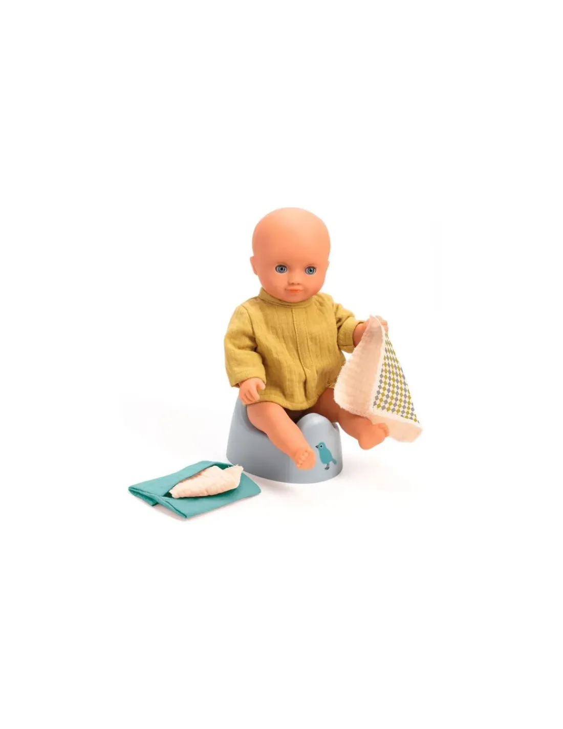 Un pot et un étui avec deux lingettes douces en tissu double gaze, des accessoires incontournables pour les premiers pas vers la propreté de sa poupée. Des accessoires de jeu adaptés aux poupées de 30 à 36 cm.