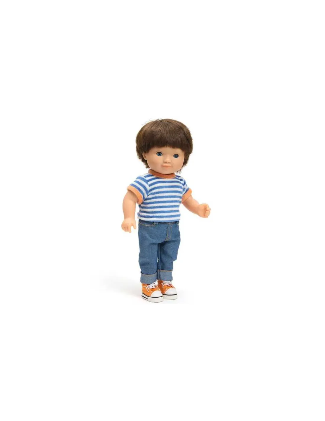 Fred est habillé d’un ensemble élégant comprenant un jean à larges revers, un t-shirt à rayures en tissu éponge velours et une paire de baskets en toile. Cette poupée garçon deviendra vite le compagnon de jeu préféré de votre enfant.