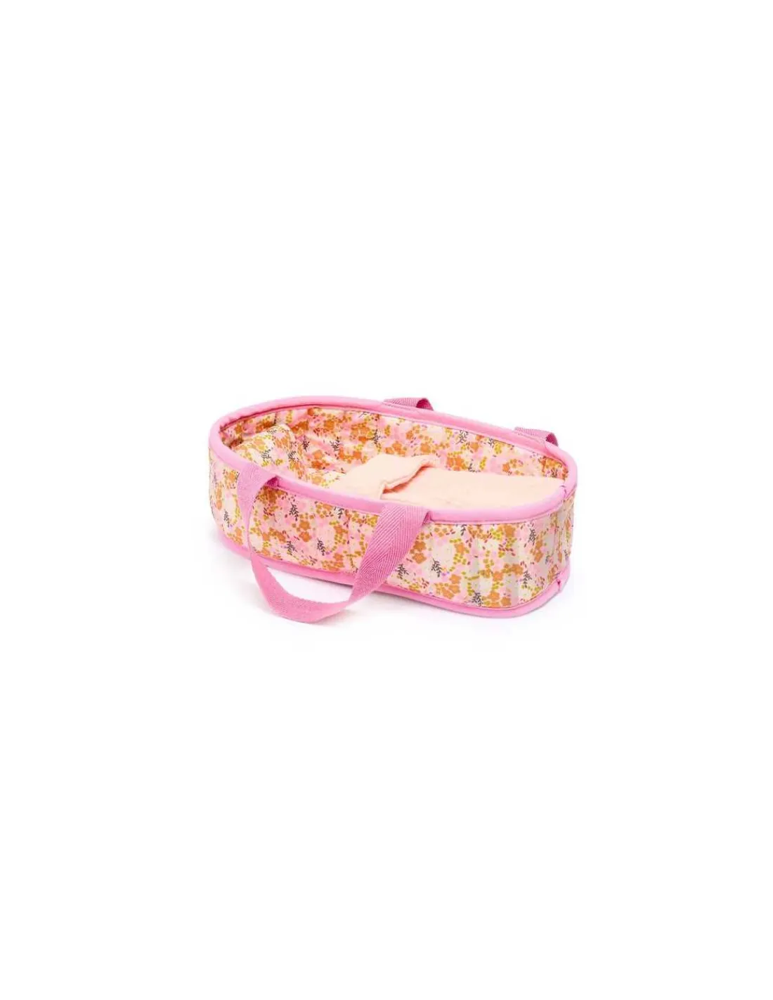 Un petit bébé facile à manipuler accompagné de son couffin léger et pratique avec ses anses souples. L’oreiller et la couverture sont accrochés au couffin par un ruban pour ne jamais les perdre.