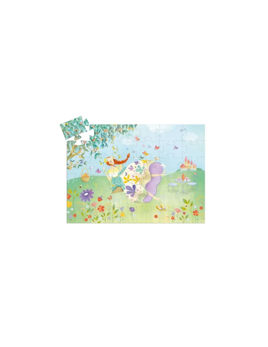 Découvrez le puzzle La princesse du printemps de Djeco, un magnifique puzzle de 36 pièces en carton pour les enfants à partir de 4 ans. Une très belle illustration d’une princesse sur une balançoire dans un pré printanier.