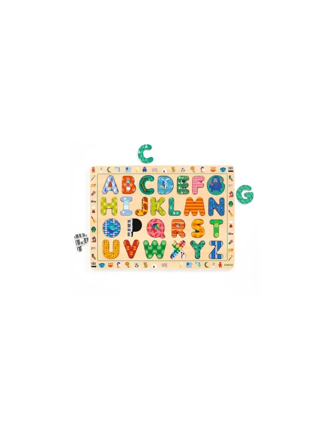 Découvrez le puzzle en bois ABC international de Djeco, un puzzle éducatif autour des lettres de l’alphabet pour les enfants à partir de 3 ans.