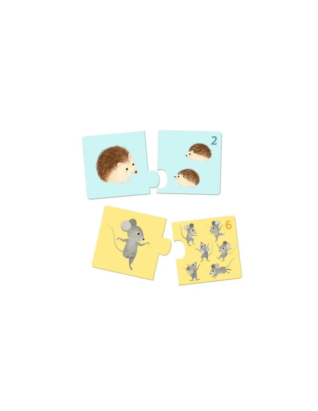 L’enfant va devoir recomposer chaque famille en associant l’animal adulte avec son ou ses petits. Un jeu rigolo pour réaliser 12 puzzles de 2 pièces. Un puzzle auto correctif, car seules les pièces correspondantes forment un puzzle parfait. De jolis puzzles éducatifs pour apprendre à reconnaitre les animaux et pour apprendre à compter.