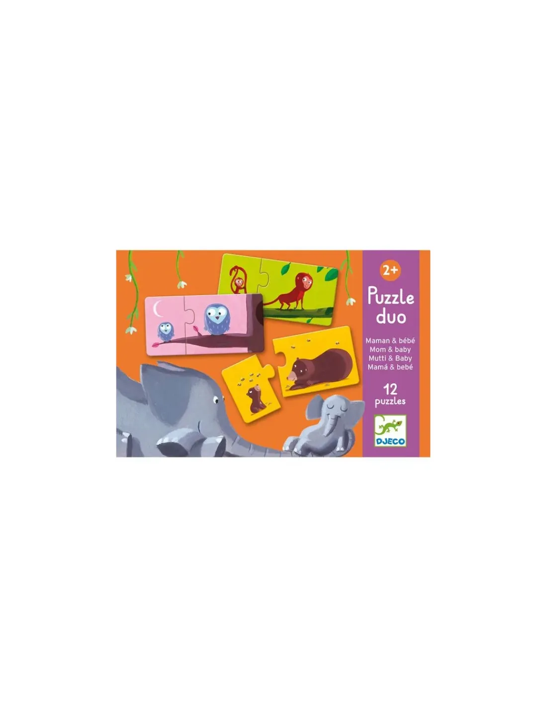 Découvrez le puzzle duo Maman et bébé de Djeco, un puzzle éducatif pour les enfants dès 2 ans. Un premier jeu d’association simple et ludique, dans lequel votre bout de chou devra associer la maman et le bébé de chaque espèce animal.