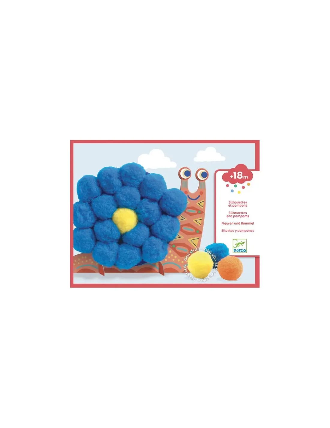Découvrez le coffret silhouettes et pompons Animaux tout doux de Djeco, une activité manuelle avec de gros pompons colorés pour les enfants dès 18 mois.
