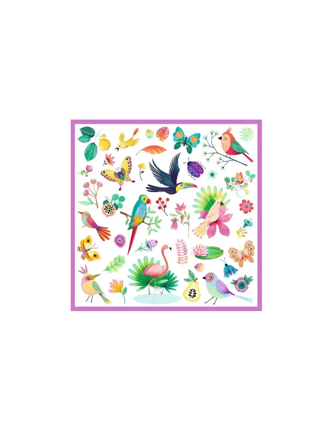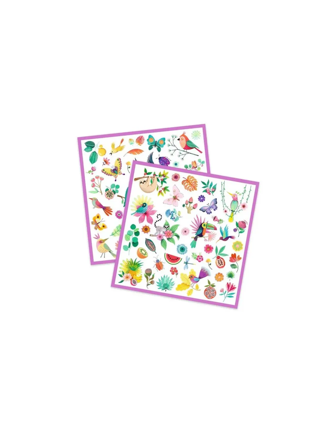 Découvrez les stickers Paradise de Djeco, une pochette comprenant 4 planches avec 160 stickers sur le thème exotique.