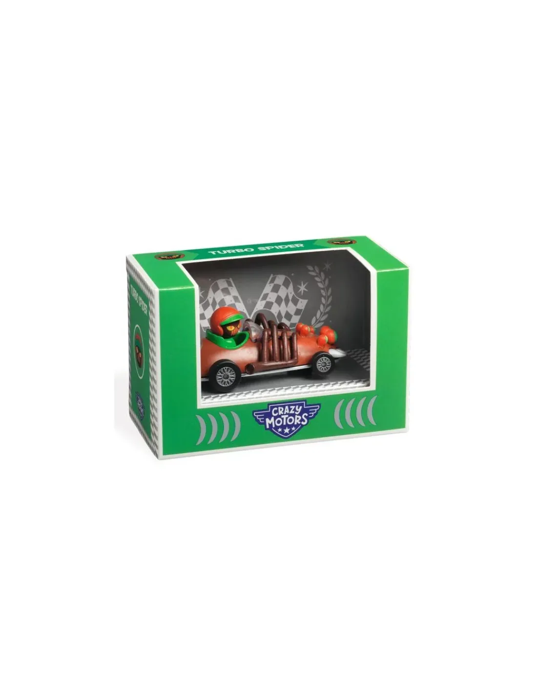 Découvrez Turbo Spider de la collection Crazy Motors de Djeco, une voiture de course en métal avec son pilote de course. Un jouet pour les enfants de 3 à 9 ans.