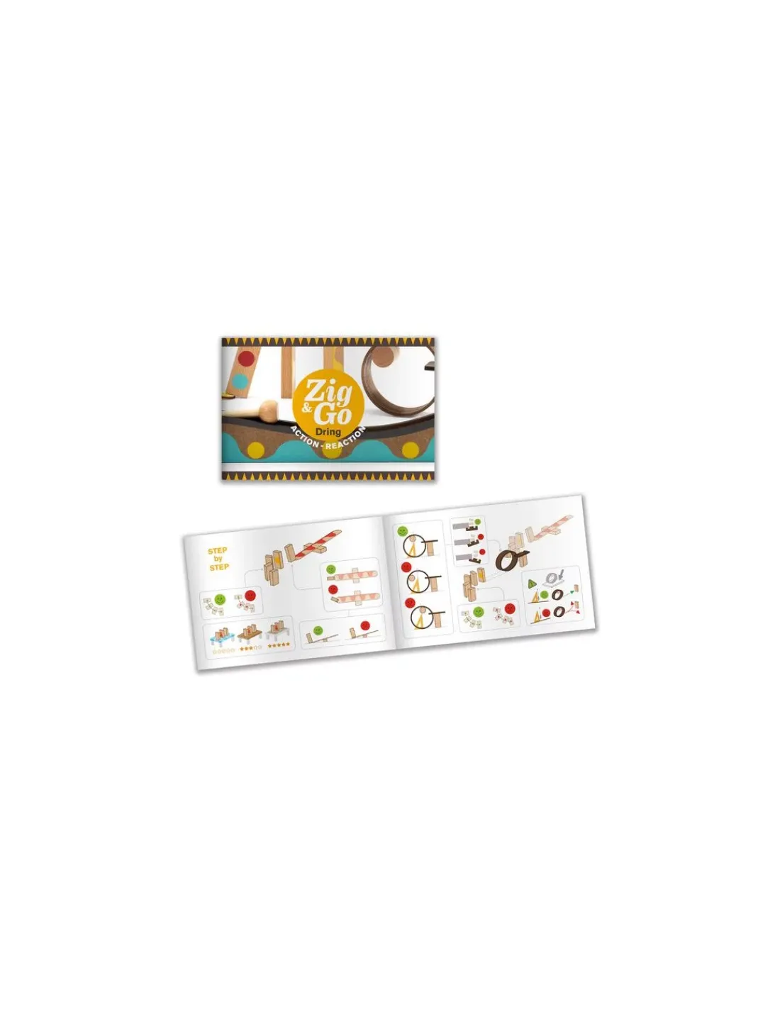 Le coffret contient un livret explicatif pas à pas avec 3 modèles fournis pour guider l’enfant dans la réalisation des parcours.