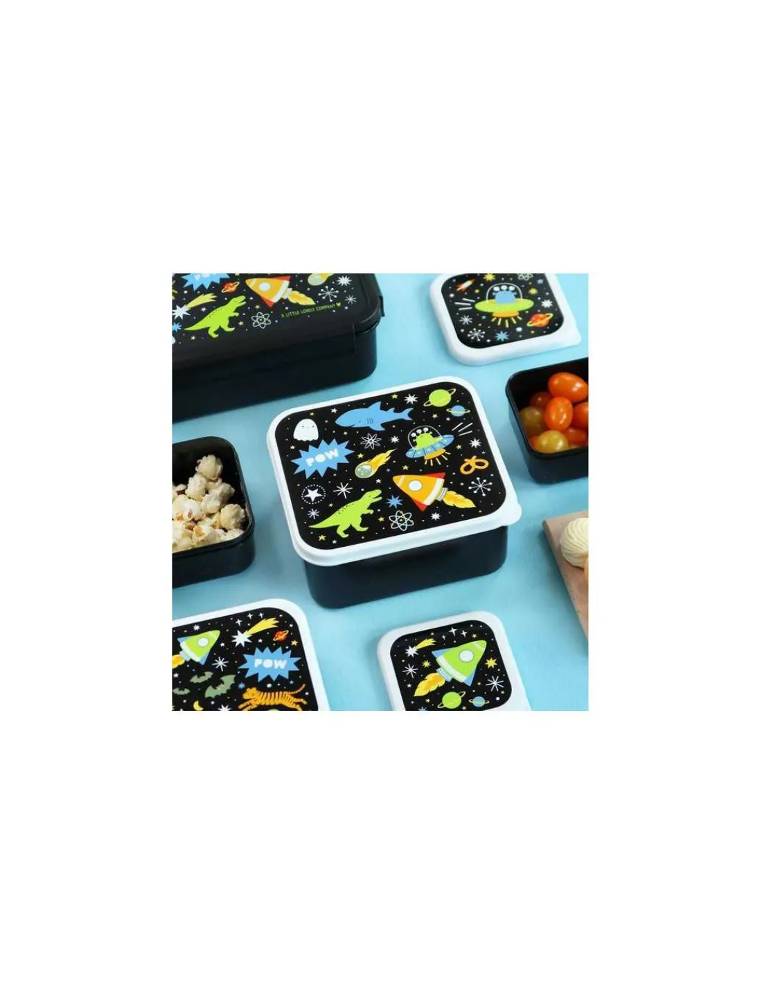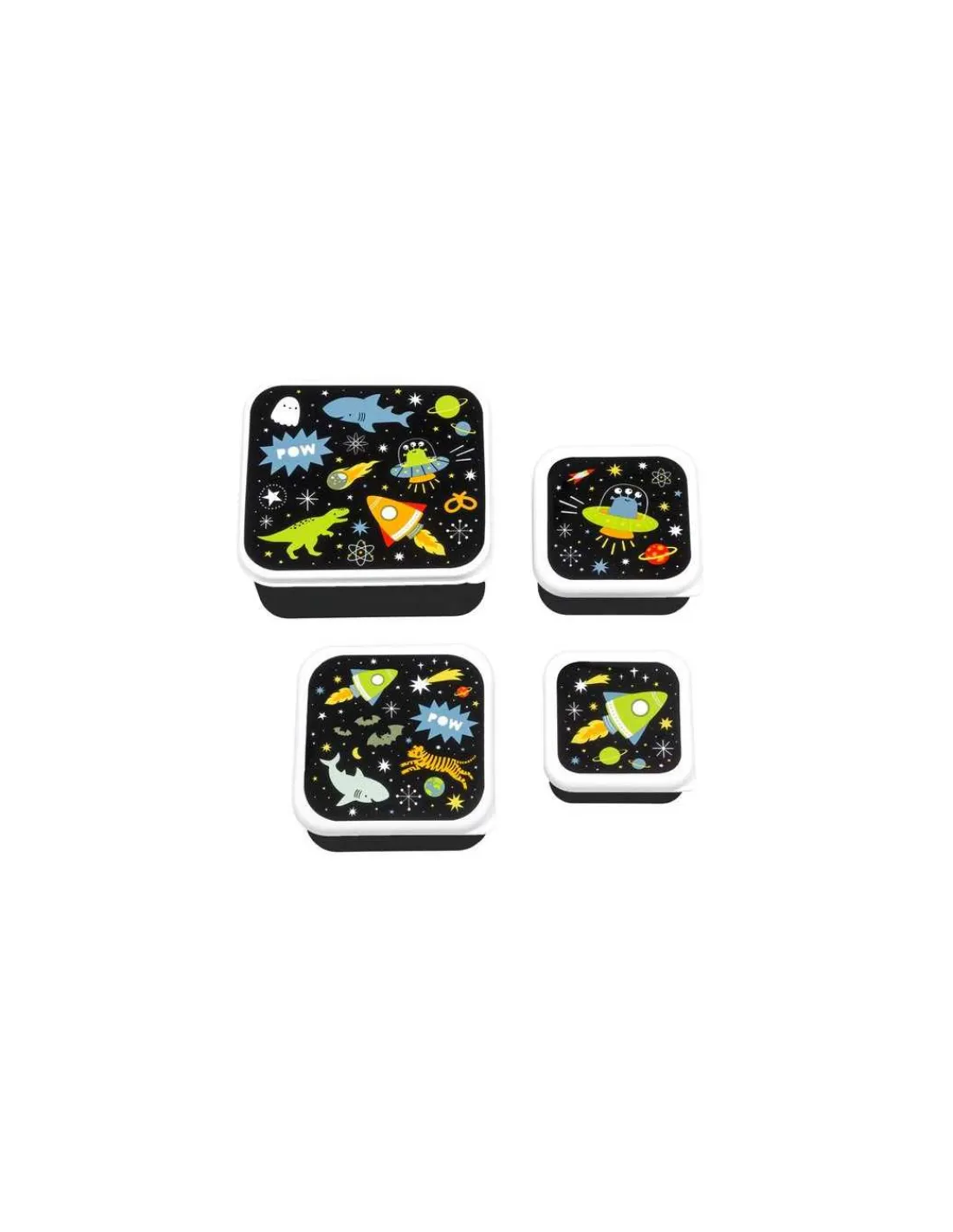 4 jolies boites à goûter de tailles différentes pour conserver les aliments sur le thème de l’espace. Un cadeau ludique, original et pratique pour les enfants ou les adultes.