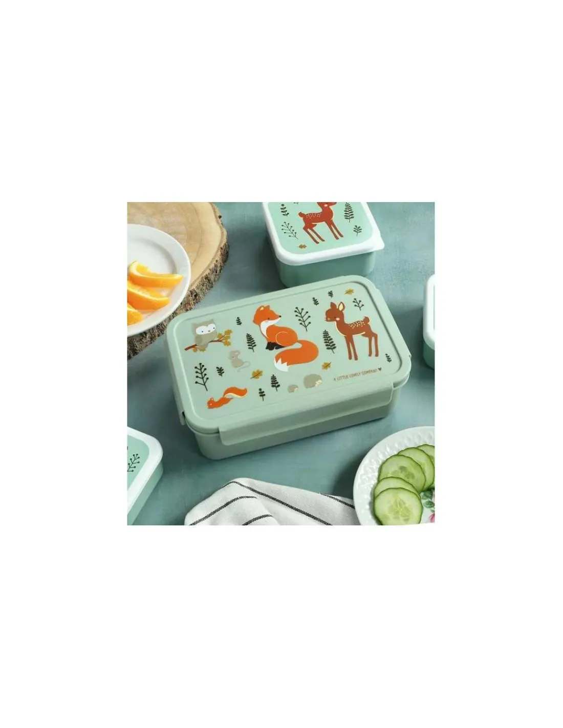Découvrez la boite à gouter bento Amis de la forêt de A Little Lovely Company, une boite à lunch verte illustrée avec des animaux de la forêt pour partir à l’aventure mais sans oublier de manger. Parfaite pour l’école, les sorties scolaires ou les activités sportives, une boite à compartiments à glisser dans son cartable ou son sac de sport.