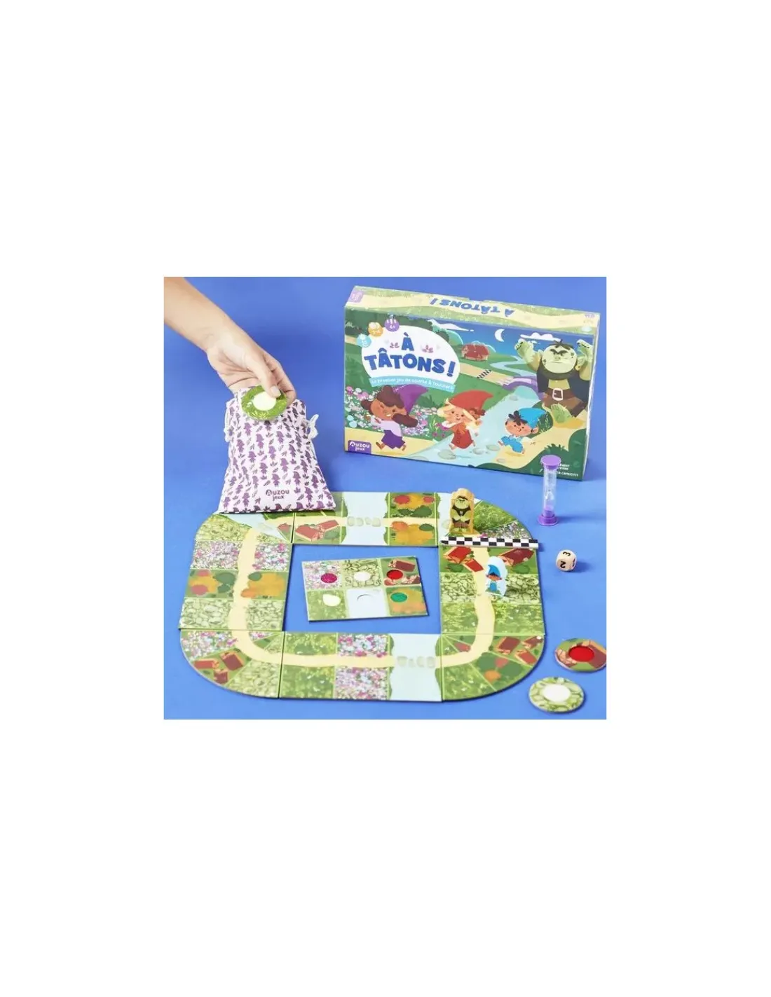 Découvrez le jeu À tâtons de Auzou, un premier jeu de course pour jouer en famille dès 4 ans. Un jeu de société qui fait appel au sens du toucher pour pouvoir avancer.