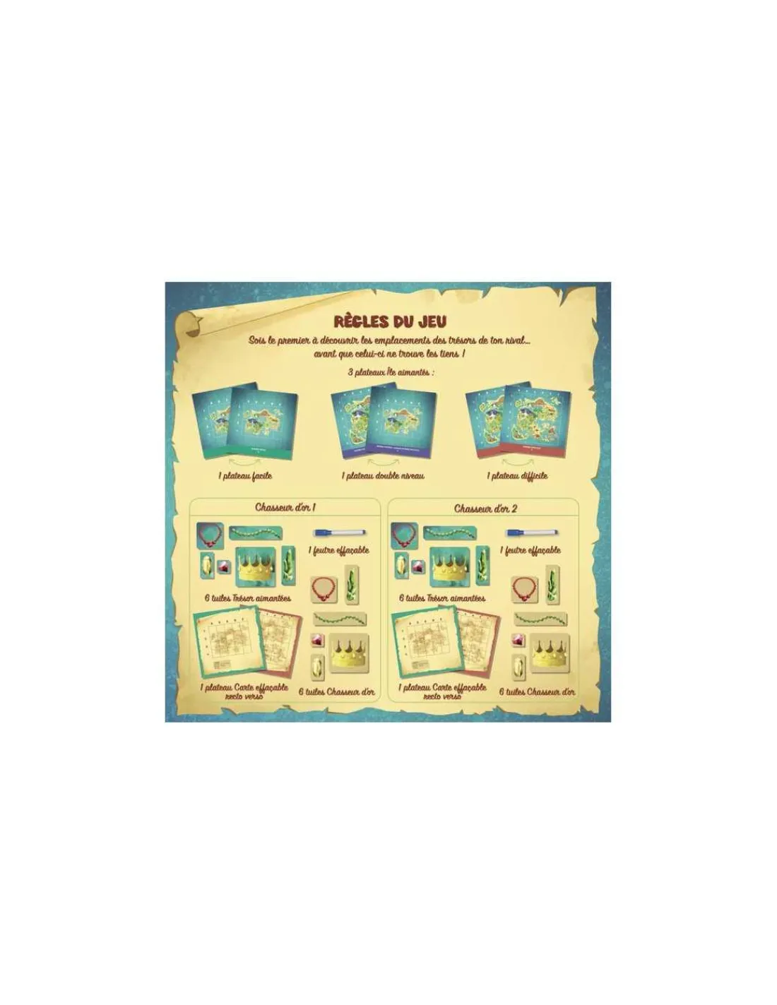 Chaque joueur cache ses trésors sur une planche magnétique en face d’eux, puis pose une question à l’adversaire pour découvrir ses trésors. Quatre types de questions peuvent être posées : par rapport à la couleur (jaune, rouge, vert), au type de trésors (bijou ou pierre), au trésor directement (le collier rouge par ex) ou demander s’il n’y a rien. Les réponses « oui » ou « non » guident les joueurs, qui peuvent noter les informations sur leur planche effaçable. Dès qu’un joueur pense à avoir trouver tous les trésors, il dévoile sa carte.