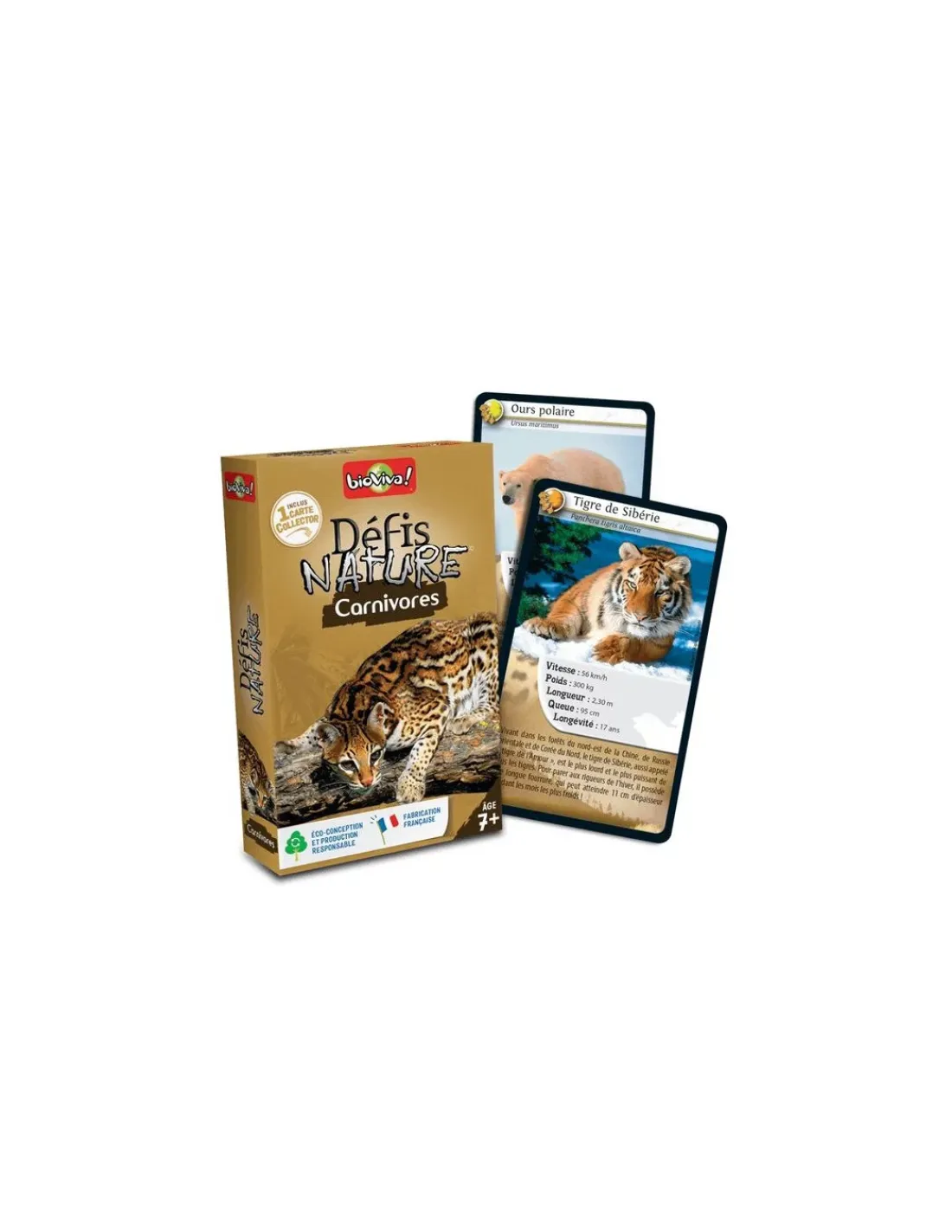 Découvrez le jeu Défis nature carnivores de Bioviva, un jeu de carte éducatif qui vous emmène à la rencontre des animaux carnivores de la planète.
