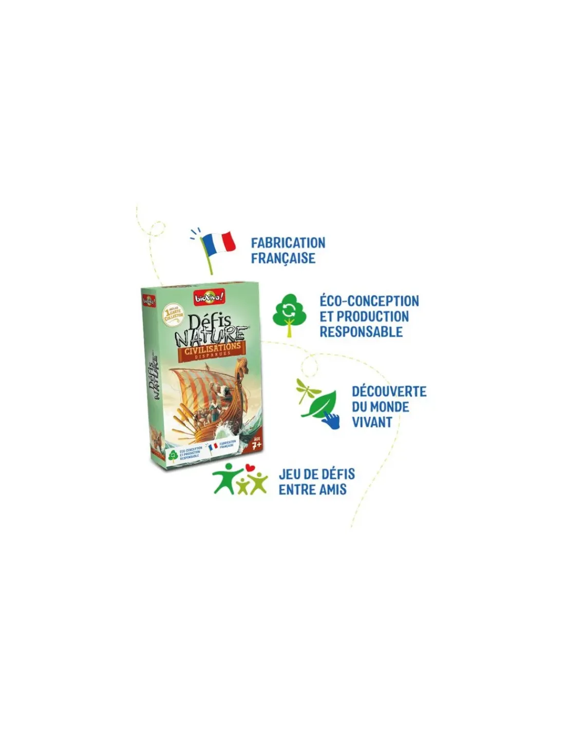 Découvrez Défis nature Civilisations disparues de Bioviva, un jeu de cartes éducatif à partir de 7 ans, qui vous emmène à la rencontre des civilisations disparues du monde entier.
