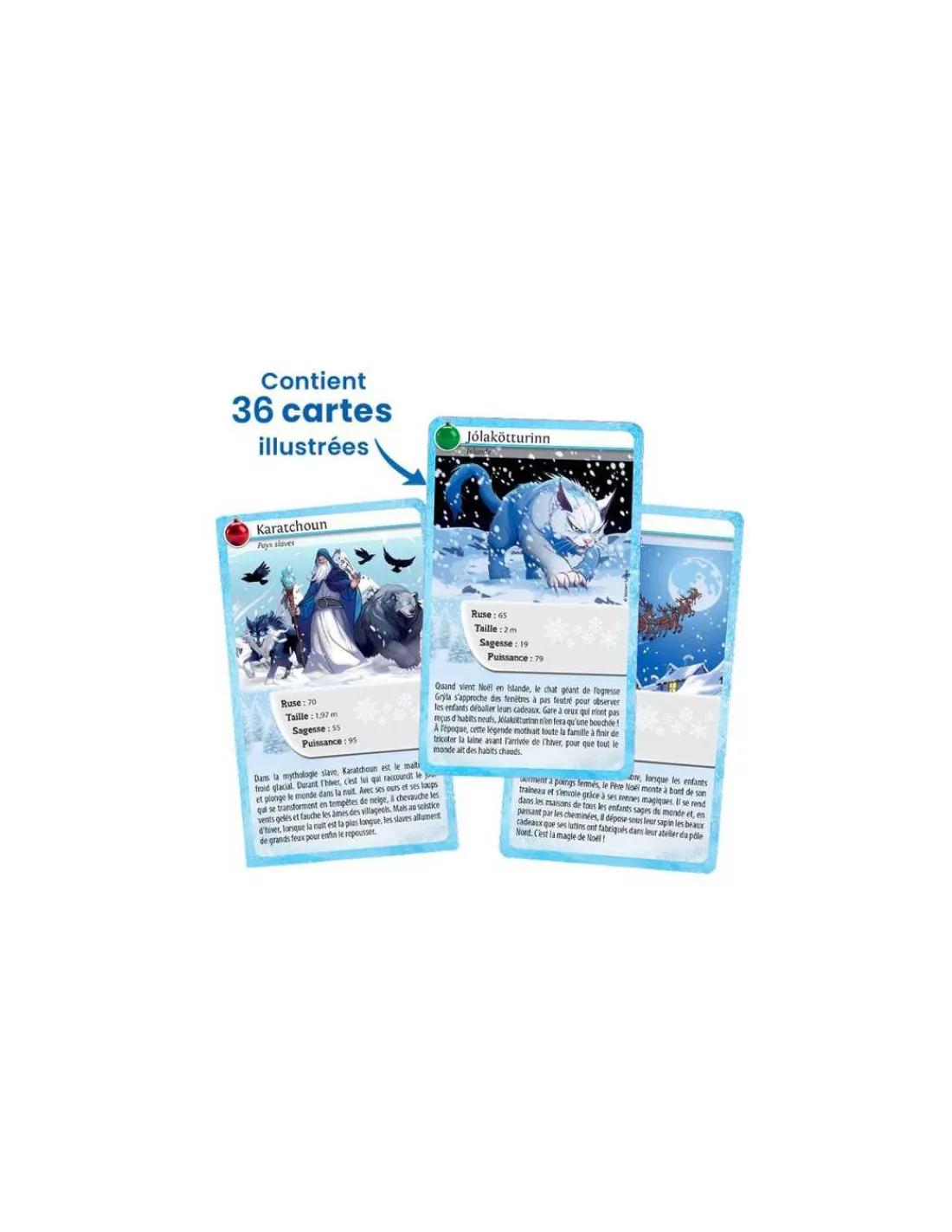 Ce jeu contient 35 cartes illustrées, une carte brillante « Légendes » et la règle du jeu.
