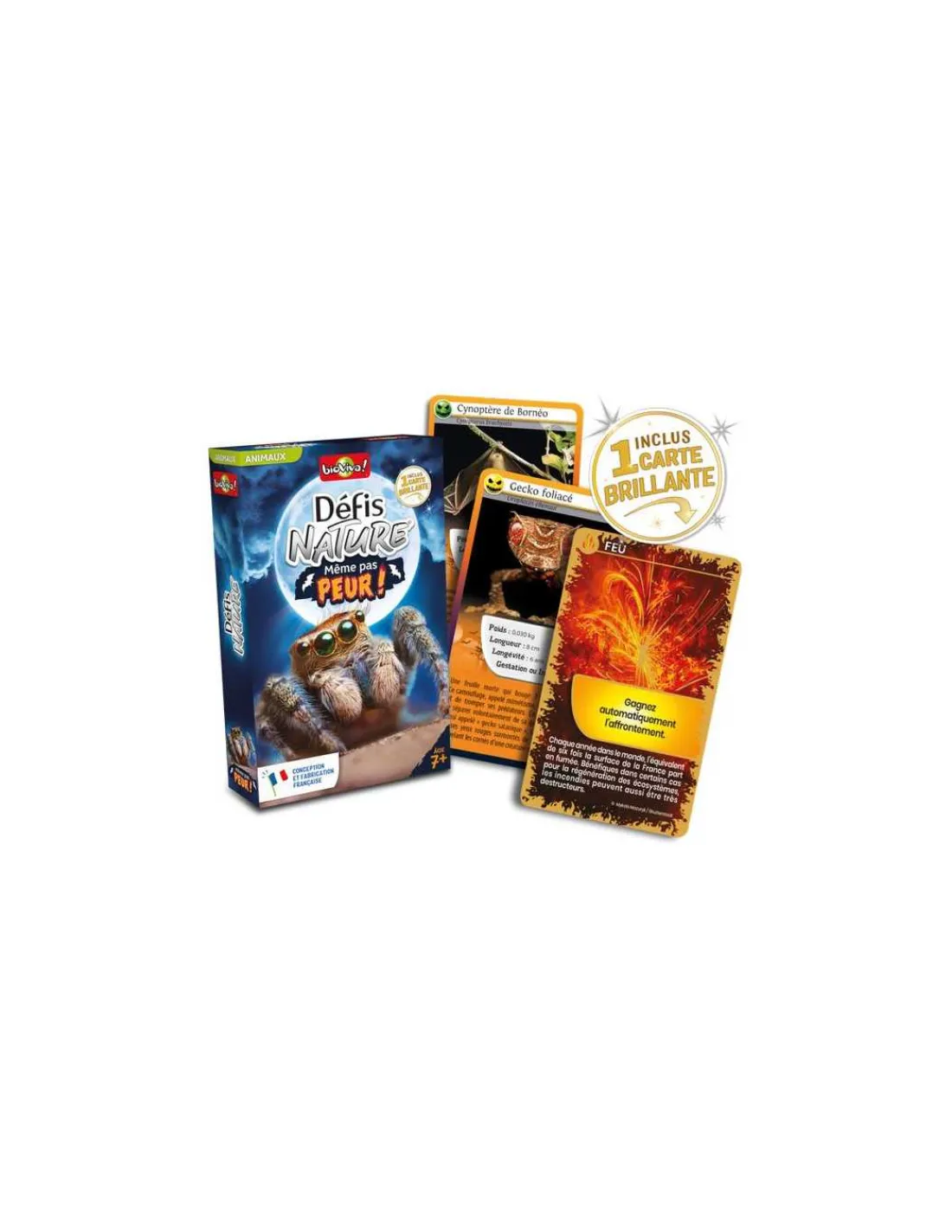 Découvrez Défis Nature Même pas peur ! de Bioviva, un jeu de cartes éducatif pour les enfants dès 7 ans, qui vous invite à plonger dans l’univers fascinant des espèces les plus effrayantes. Un jeu de société Made in France.