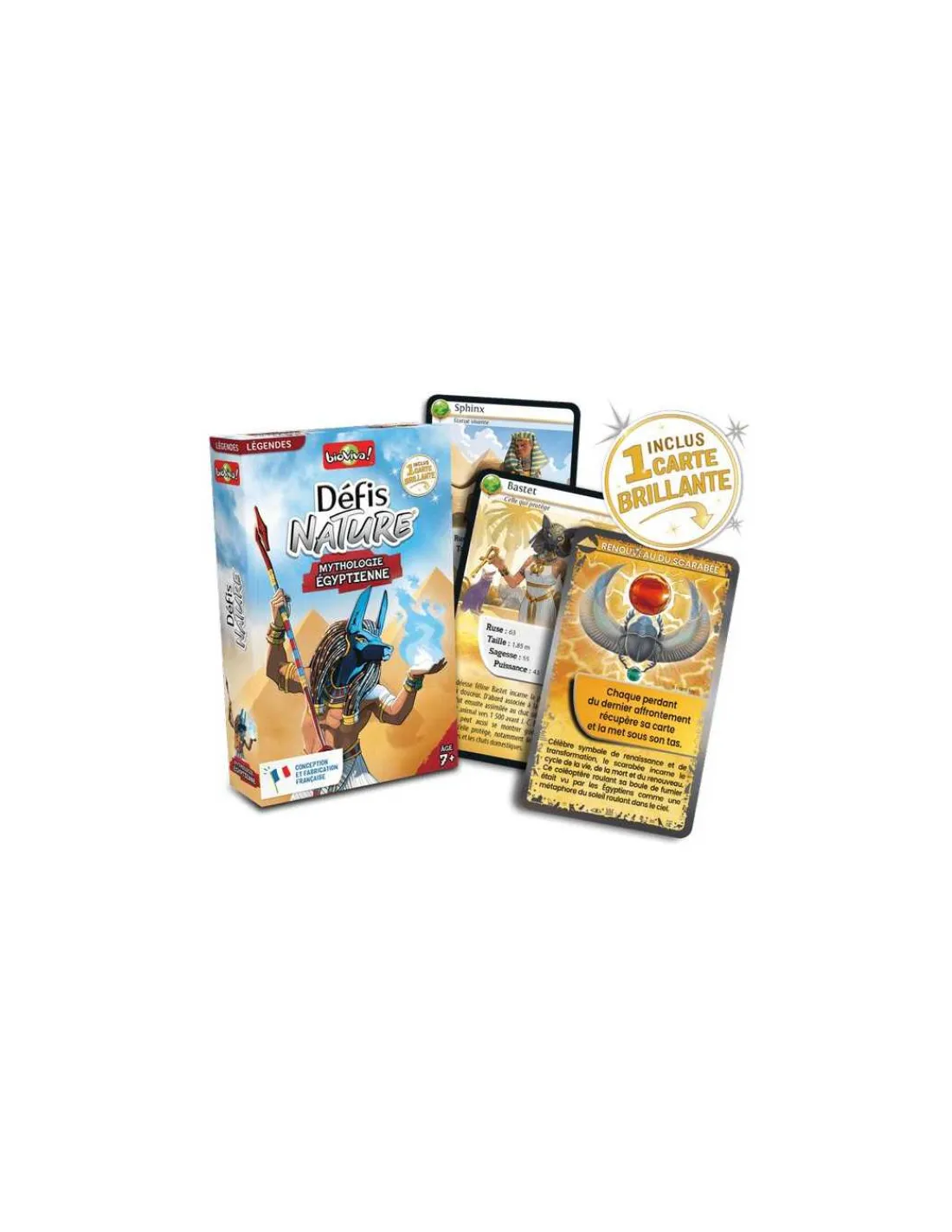 Découvrez Défis Nature Mythologie Égyptienne de Bioviva, un jeu de cartes éducatif pour les enfants dès 7 ans, qui vous emmène à la rencontre des personnages emblématiques de la mythologie égyptienne. Un jeu de société Made in France.