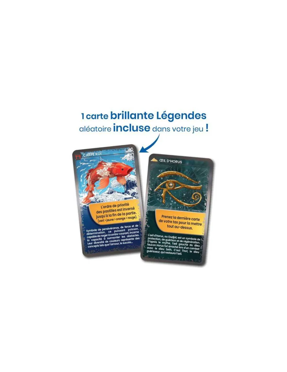 Ce jeu contient 35 cartes illustrées, une carte brillante « Légendes » et la règle du jeu.