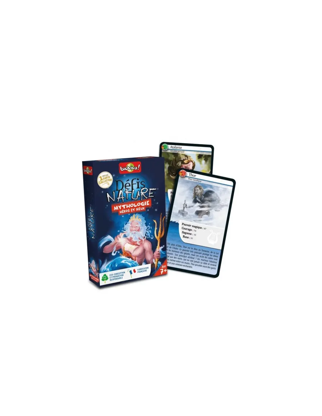 Découvrez Défis nature Mythologie, héros et dieux de Bioviva, un jeu de cartes éducatif à partir de 7 ans, qui vous emmène à la rencontre des personnages emblématiques de la Mythologie. Pariez sur leurs points forts pour collecter toutes les cartes du jeu et remporter la partie.
