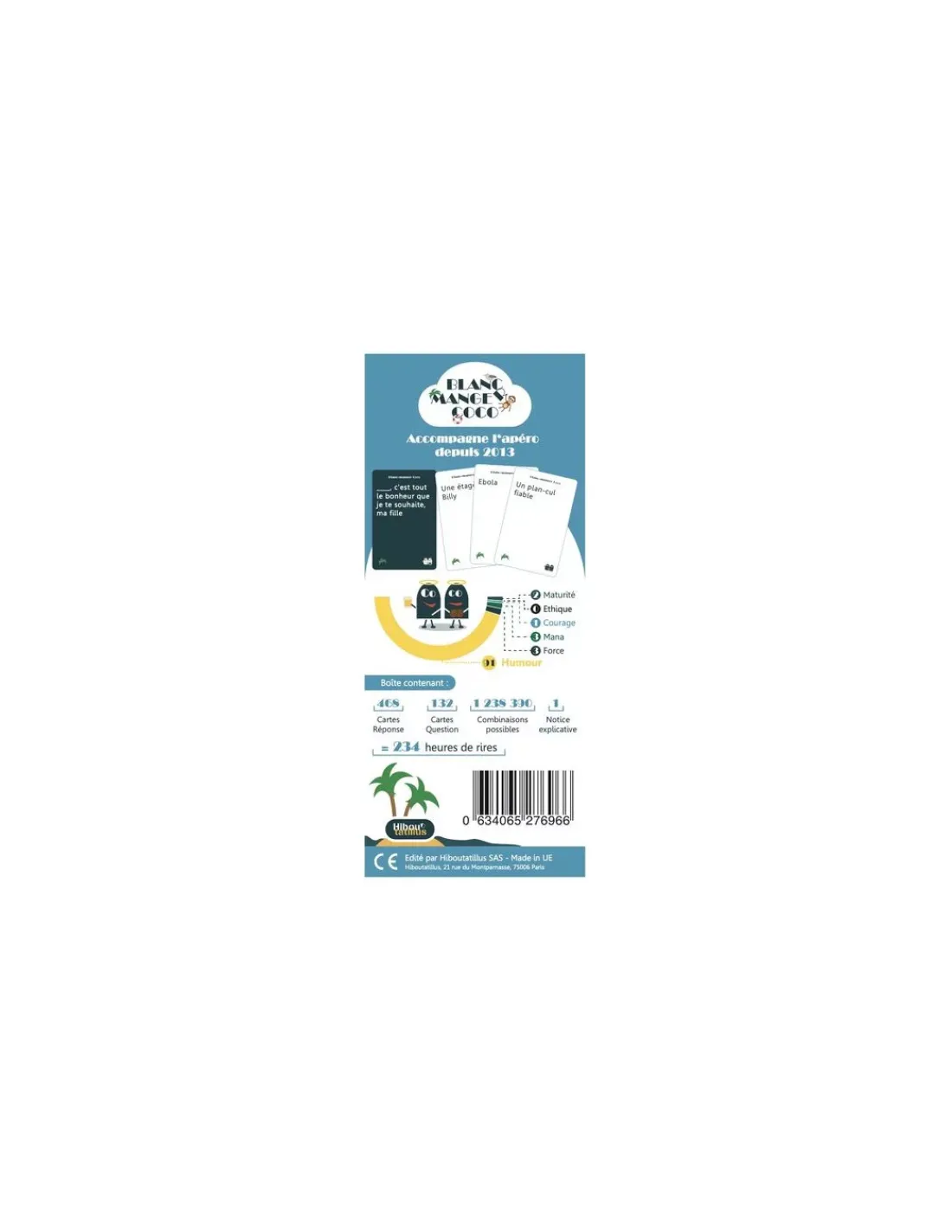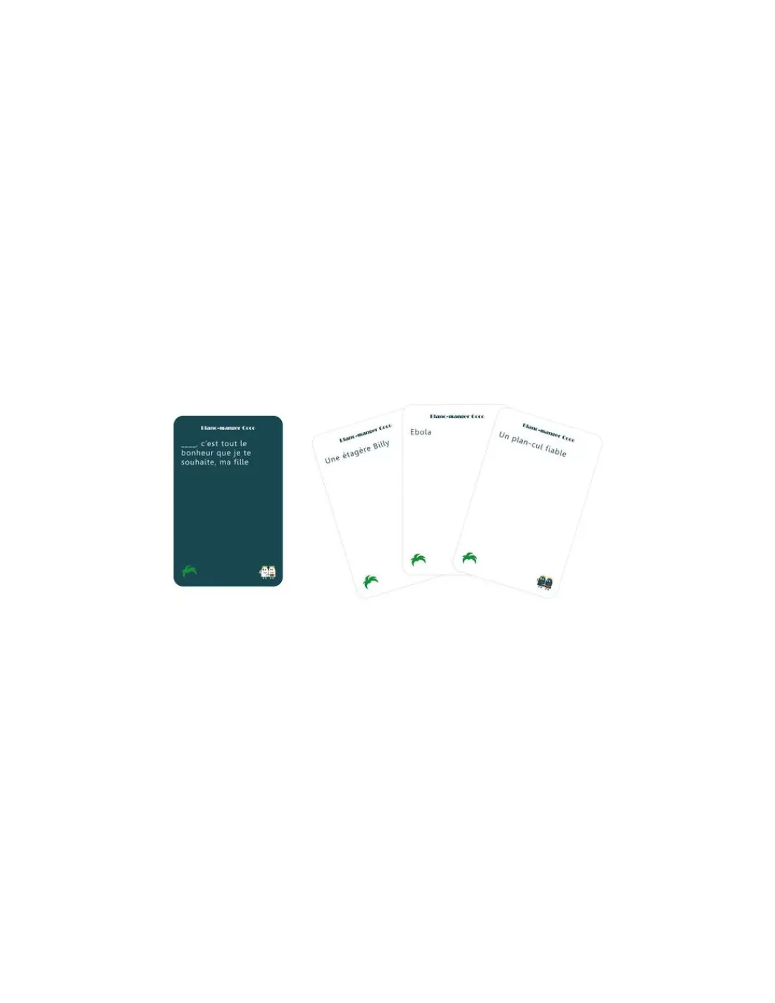 Blanc-manger Coco est un jeu de cartes idéal pour l’apéro entre amis. Il est composé de 134 cartes « questions » et 466 cartes « réponses » pour une infinité de combinaisons croustillantes.