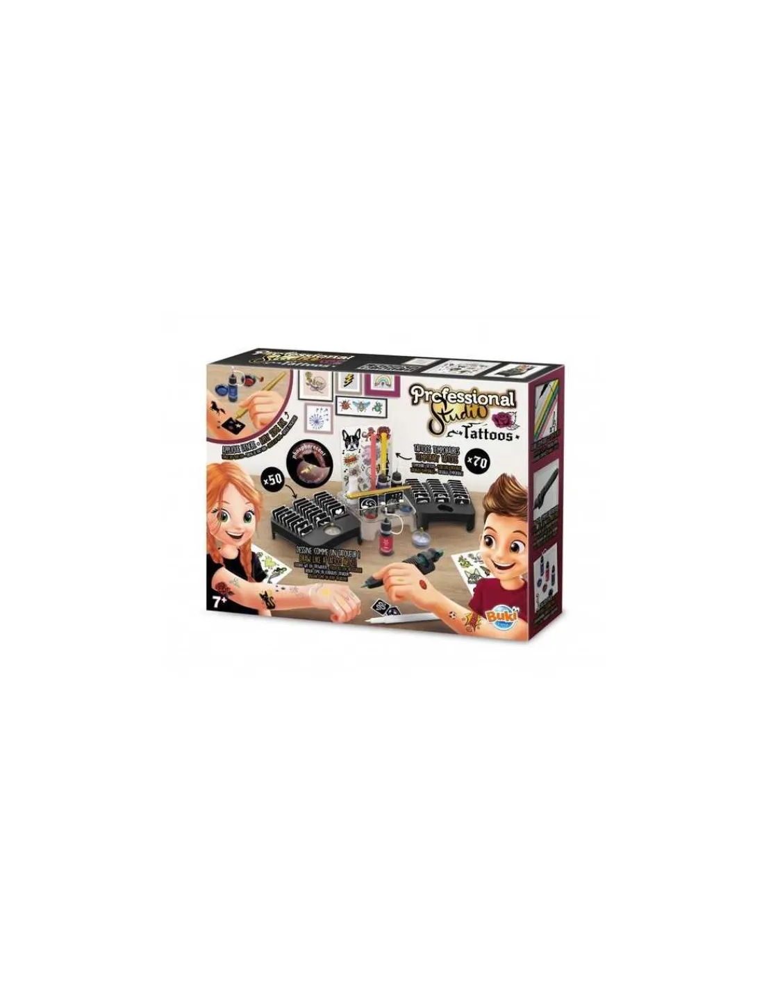 Découvrez le coffret professionnal studio Tattoos de Buki, un superbe coffret cadeau dès 7 ans pour réaliser de magnifiques tatouages. Une station pour dessiner et appliquer toutes sortes de tatouages temporaires. Deviens un véritable tatoueur grâce à ton studio Tattoos.