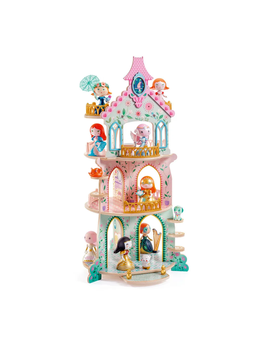 Découvrez le château de princesse Artytoys Ze Princesses Tower de Djeco, une tour à l’architecture richement décorée pour mettre en scène ses princesses Arty Toys à partir de 4 ans. Un décor idéal pour s’inventer de belles histoires de princesses, de princes et de chevaliers. Un château féerique aux couleurs pastelles et aux détails raffinés avec salons de réception, dressing, coiffeuse, terrasse, petites alcôves…