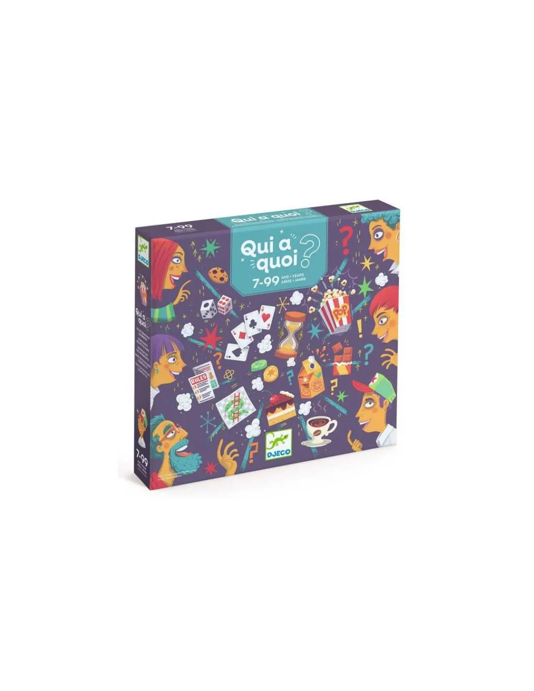 Découvrez Qui a quoi ? de Djeco, un jeu de communication et de coopération pour jouer en famille ou entre amis dès 7 ans. Un jeu de société dans lequel les joueurs doivent partager des indices et s’écouter pour résoudre l’énigme ensemble.