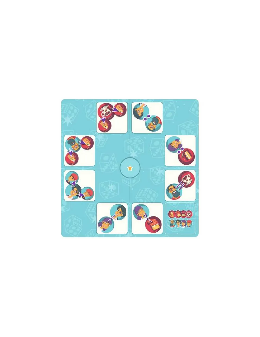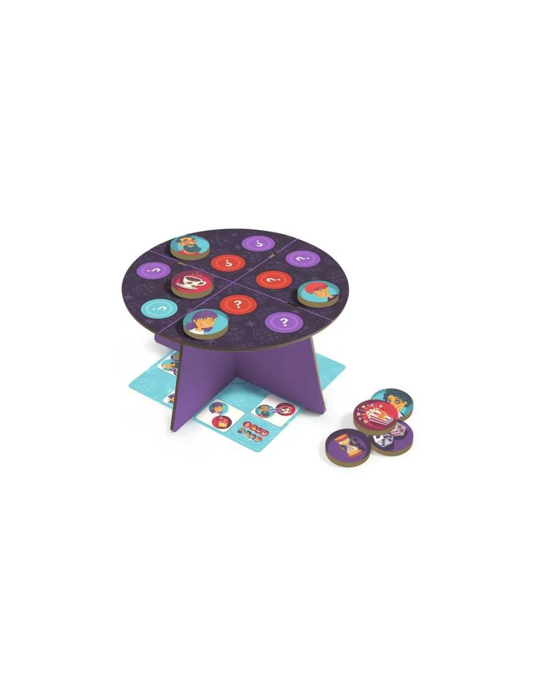 Imaginez : la table est prête, les jeux sont sortis… mais voilà, chacun a ses petites exigences! Le petit frère refuse de distribuer les pions, maman réclame son café, et les sœurs, elles, tiennent absolument à ne pas s’asseoir côte à côte. Alors, comment faire pour que tout le monde s’amuse ? Le but du jeu est simple : placez les personnages avec leur objet et leur goûter à la bonne place… mais attention une seule solution est possible!