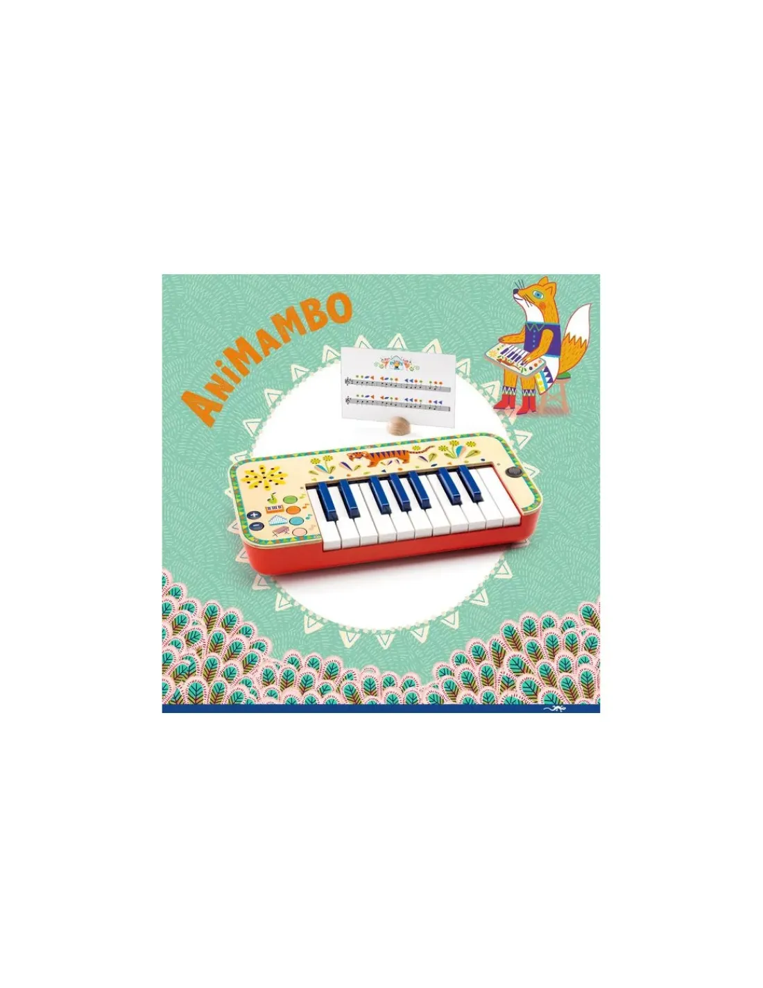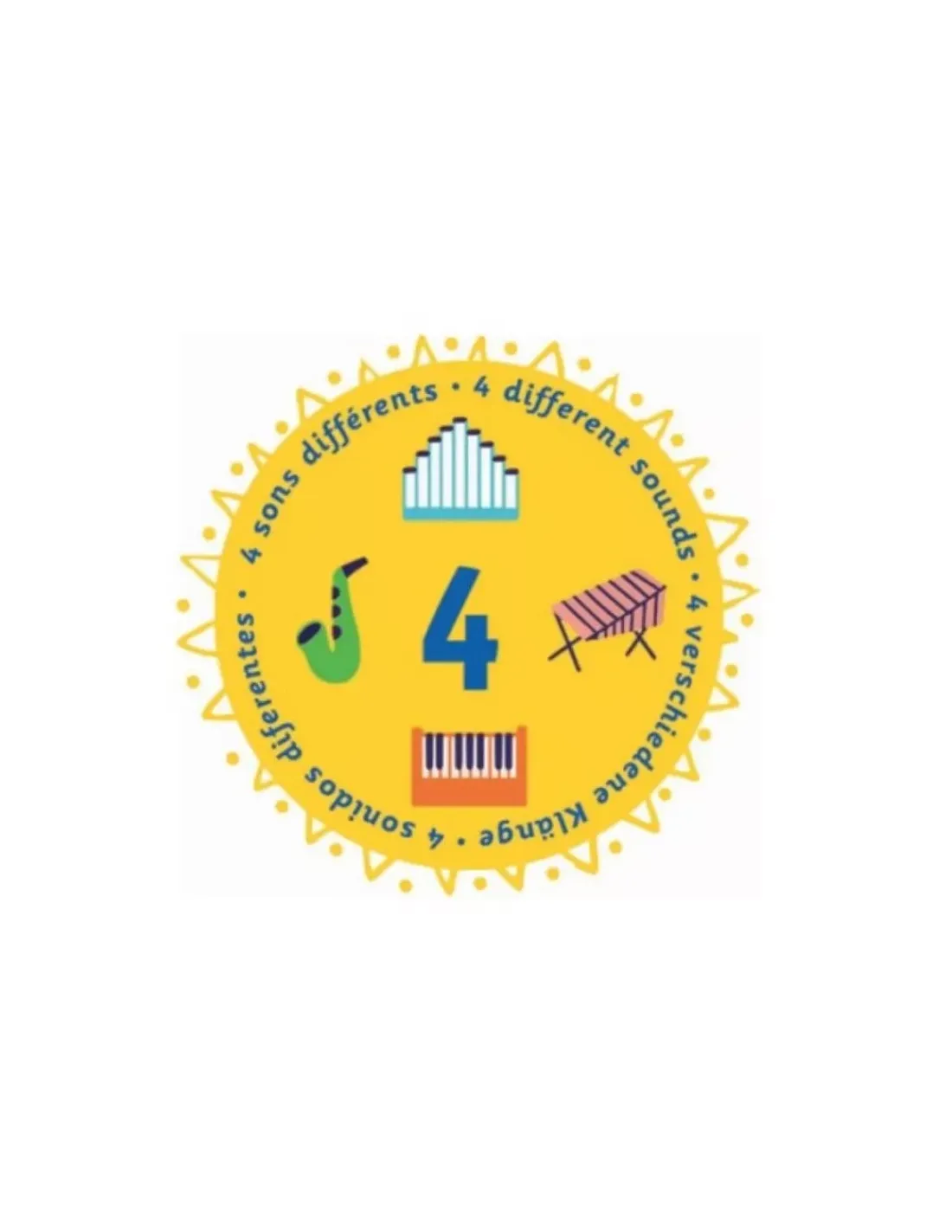 Découvrez le synthétiseur de la collection Animambo de Djeco, un instrument de musique pour les enfants à partir de 3 ans, qui vont s’amuser à créer de la musique avec 4 sons d’instruments (saxophone, piano, orgue et vibraphone).