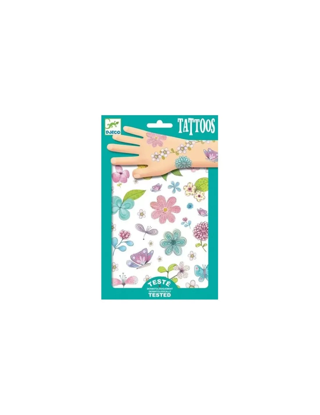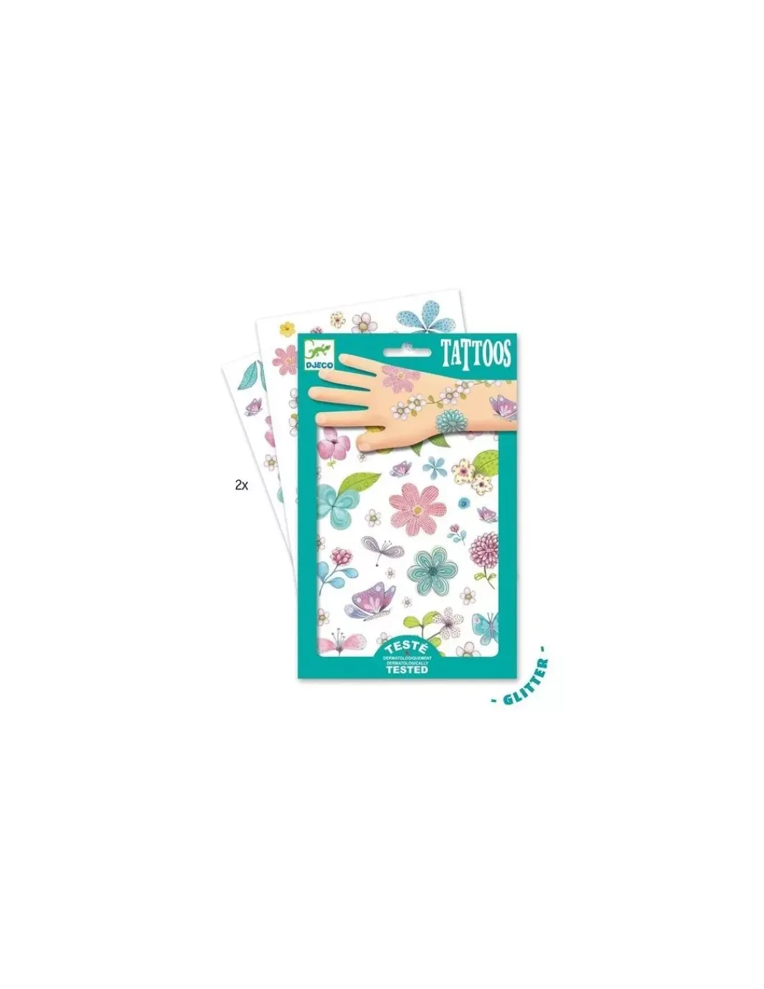 Djeco vous présente ses magnifiques tatouages « Belle des champs » composé de fleurs et de papillons pailletés testés dermatologiquement pour une animation avec les copines très sympathique et un accessoire de mode incontournable à partir de 3 ans.