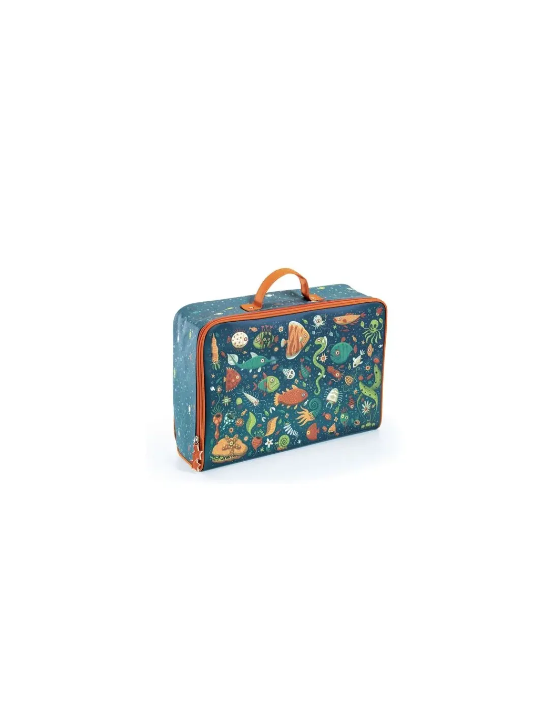 Découvrez la valise poissons de Djeco, une valise aux douces couleurs, joliment illustrée sur le thème de la mer pour les enfants à partir de 3 ans.