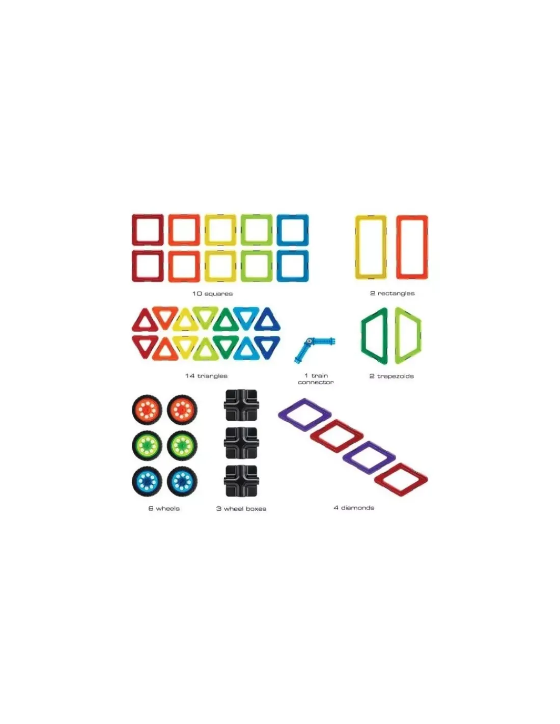 Geosmart est un jouet de construction magnétique qui se compose de pièces de constructions de couleurs vives en forme de carré, losange, triangle, rectangle, triangle isocèle et trapèze. Chaque pièce de jeu renferme des aimants qui sont protégés par un système de sécurité double qui permet aux enfants de créer des constructions en 3D en suivant des plans ou en laissant libre court à leur imagination.