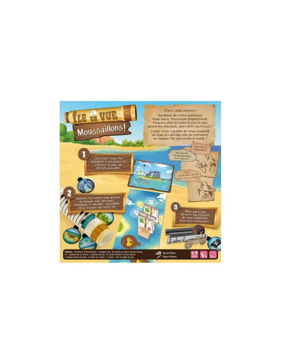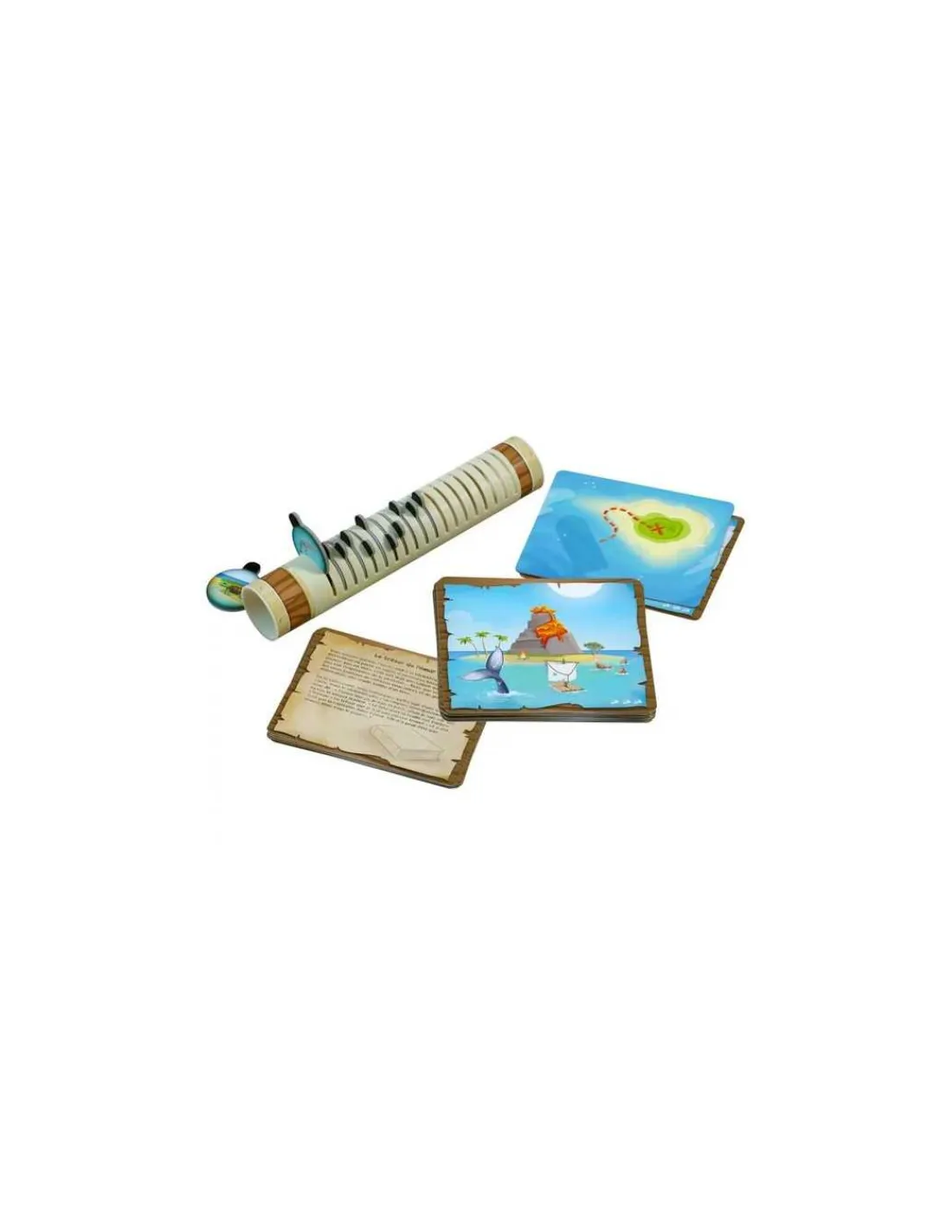 Dans ce jeu de société, vous voyagez sur le même bateau et vous gagnez ou perdez en équipe. Après avoir lu l’histoire dans laquelle vous vous trouvez, vous devez rapidement consulter une carte. Avec ce que vous aurez retenu, vous devez trouver l’île au trésor en regardant dans la longue-vue et en repérant les bons détails. Il y a beaucoup d’îles dans les Caraïbes, mais une seule cache le butin…