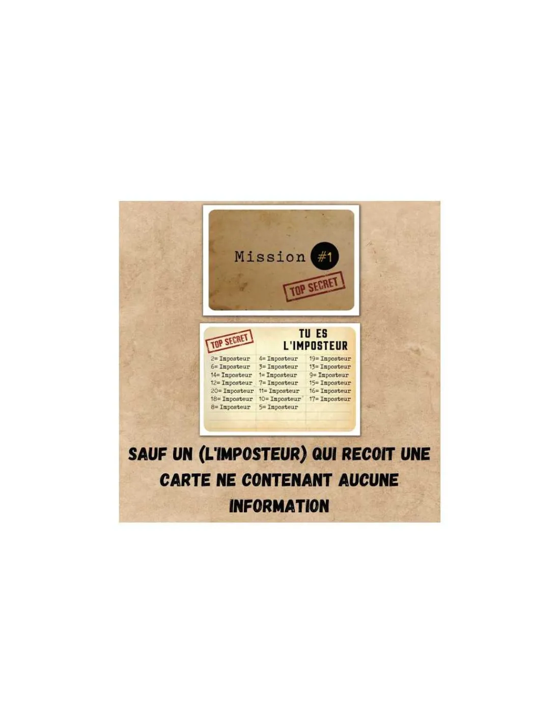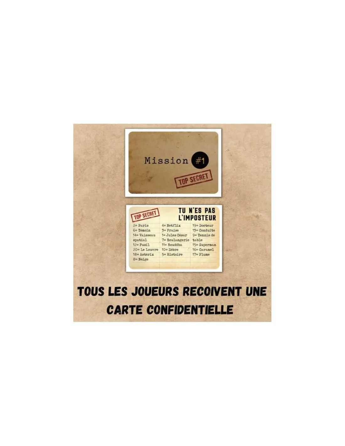 Que vous soyez l’imposteur ou un honnête participant, vous devrez user de tactiques astucieuses pour atteindre vos objectifs. Saurez-vous démasquer l’imposteur ? Ou serez-vous capable en tant qu’imposteur de déjouer les doutes qui pourraient peser sur vous te remporter la partie ?