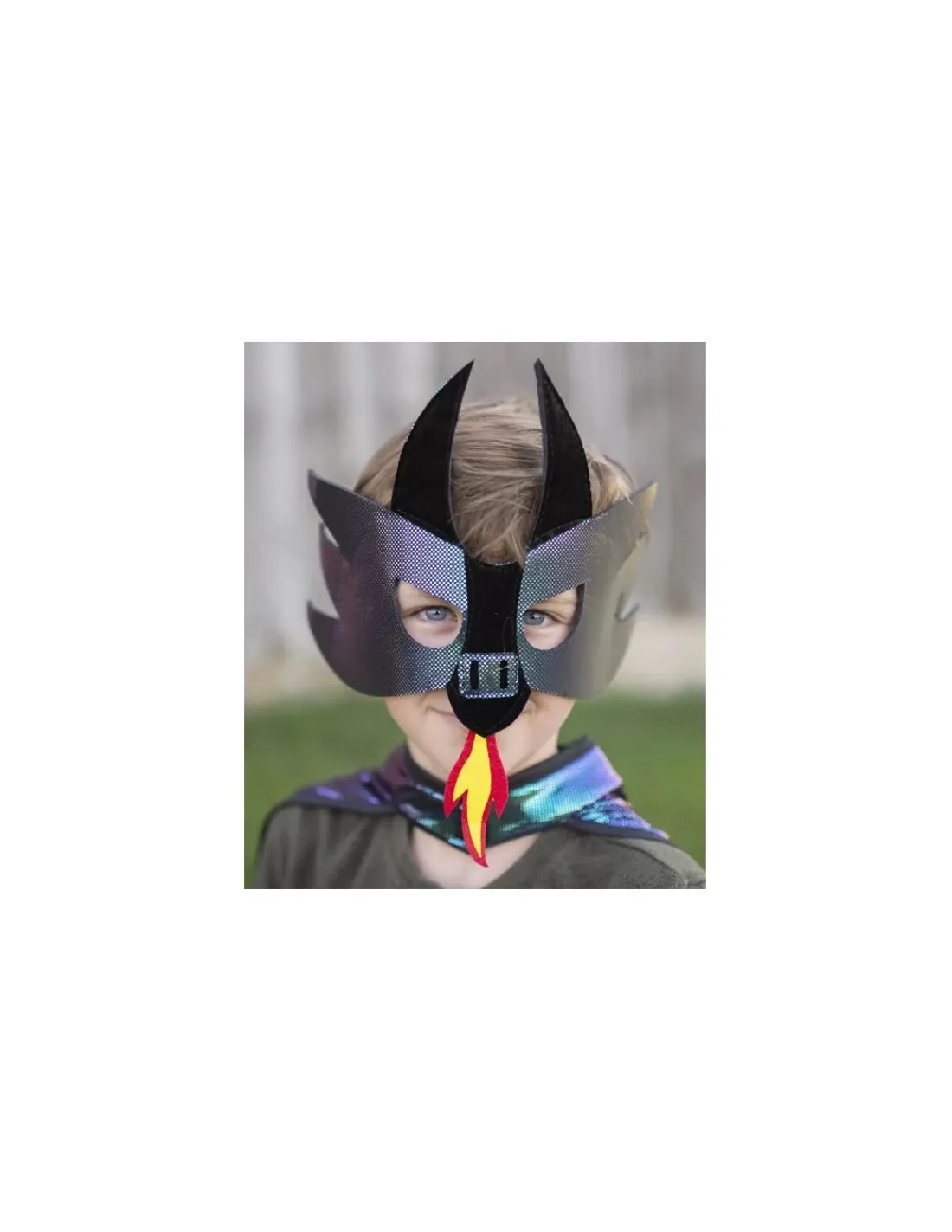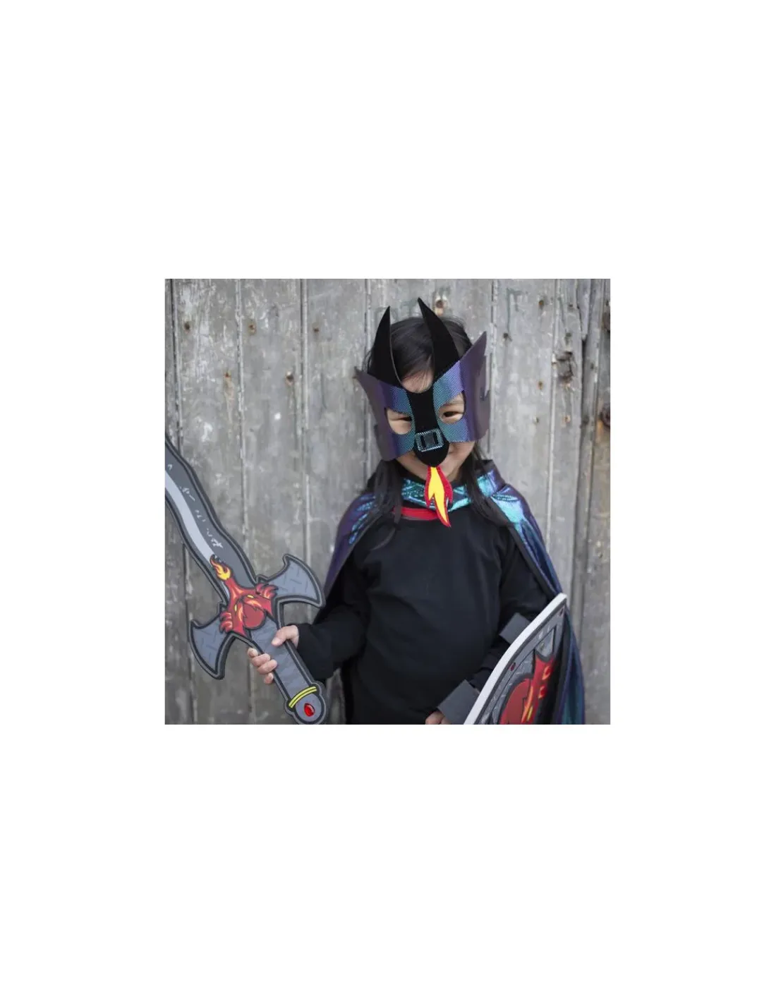 Cette cape sera très appréciée des enfants avec son effet d’armure d’un côté et son effet dragon ardent de l’autre côté. Il est lavable en machine et très facile à mettre et à enlever grâce à sa fermeture velcro.