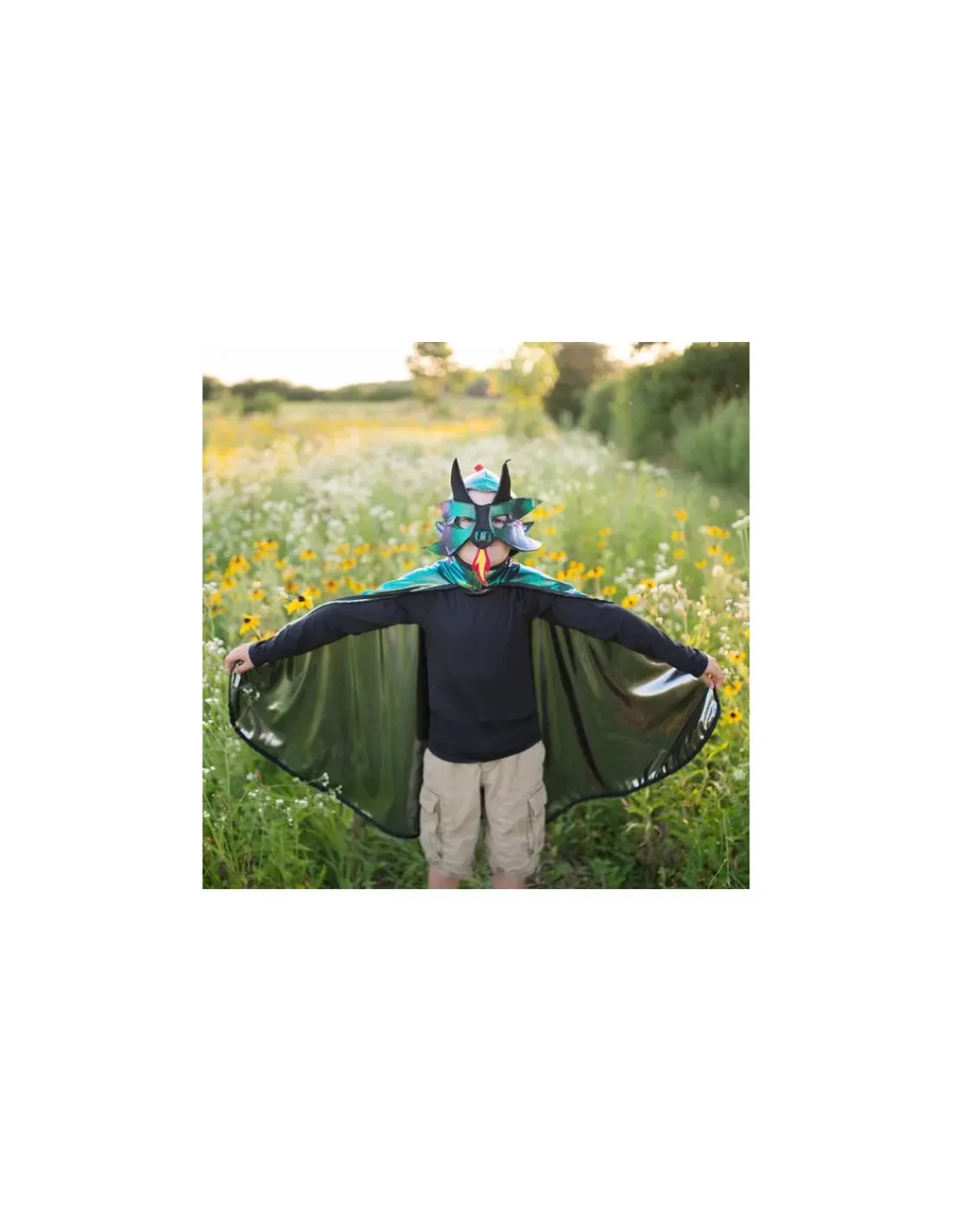 Découvrez la cape et le masque réversibles chevalier dragon de taille 4 à 6 ans de Great Pretenders, un magnifique costume pour passer d’un chevalier à un dragon avec le même déguisement.