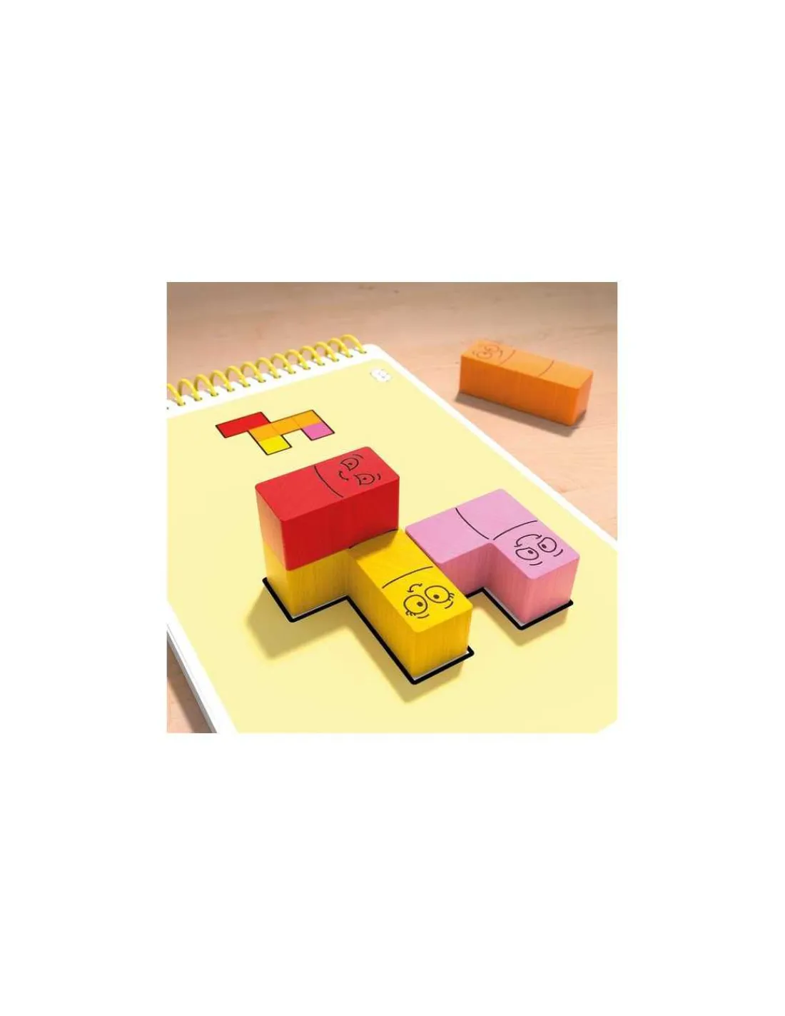 Un jeu avec des pièces en bois robustes et durables qui renforce la réflexion logique et la représentation dans l’espace de manière ludique. Les Acrobasticots sont les rois des acrobaties. Les différentes figures artistiques n’ont plus de secret pour ces asticots acrobates. Ce qu’ils préfèrent faire? Reproduire des formes ou des animaux. Le joueur les aide en les empilant les uns sur les autres pour réussir les modèles. Pour y parvenir, il faudra user de son sens de l’observation, être perspicace et savoir se repérer dans l’espace. Il y a 60 missions au niveau de difficulté croissant à relever. Qui parviendra à toutes les accomplir?