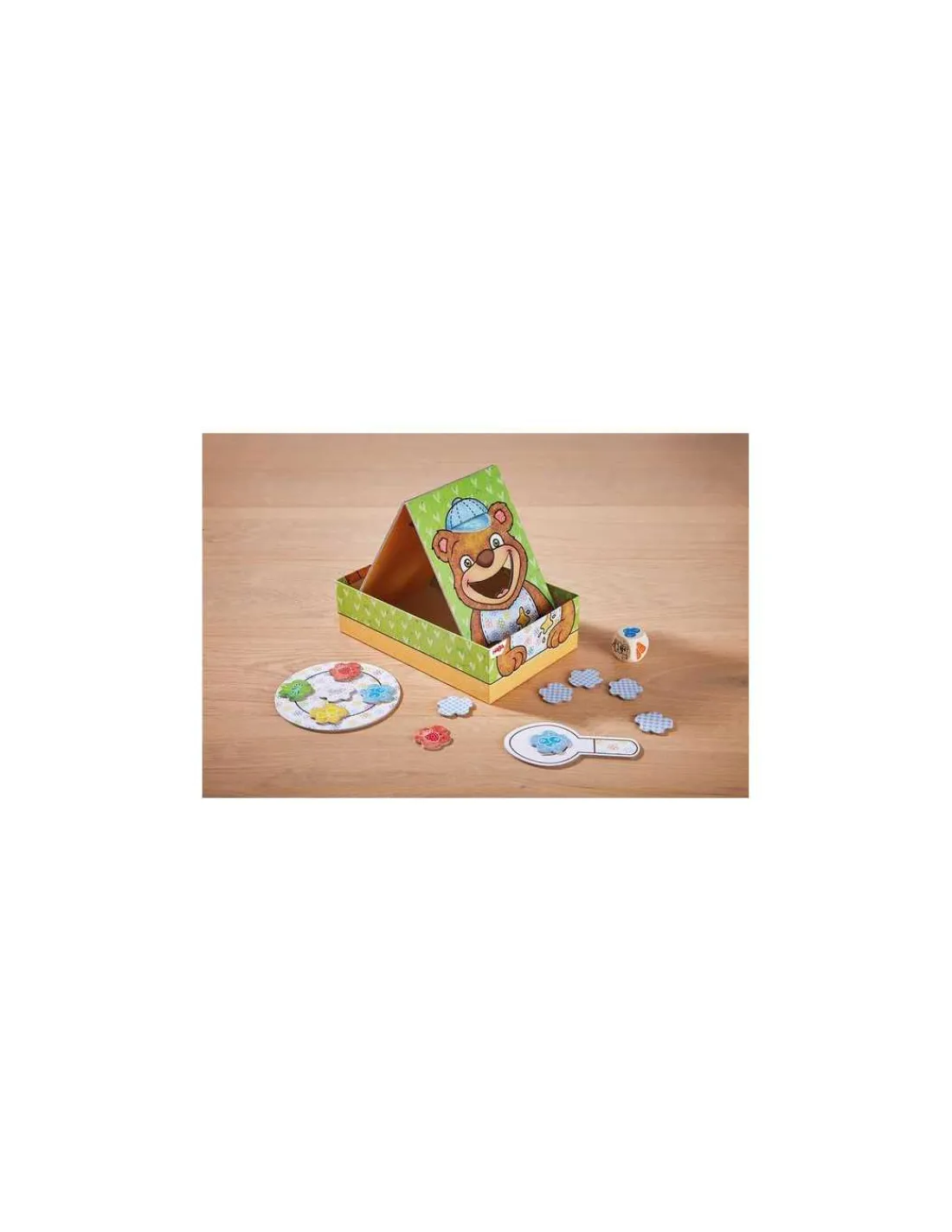 Le petit ours a une faim de loup, heureusement qu’une assiette pleine de bouillie est déjà prête. Le dé va indiquer aux enfants quelle bouillie ils vont donner à manger au petit ours. Qui veut donner à manger au petit ours en premier?