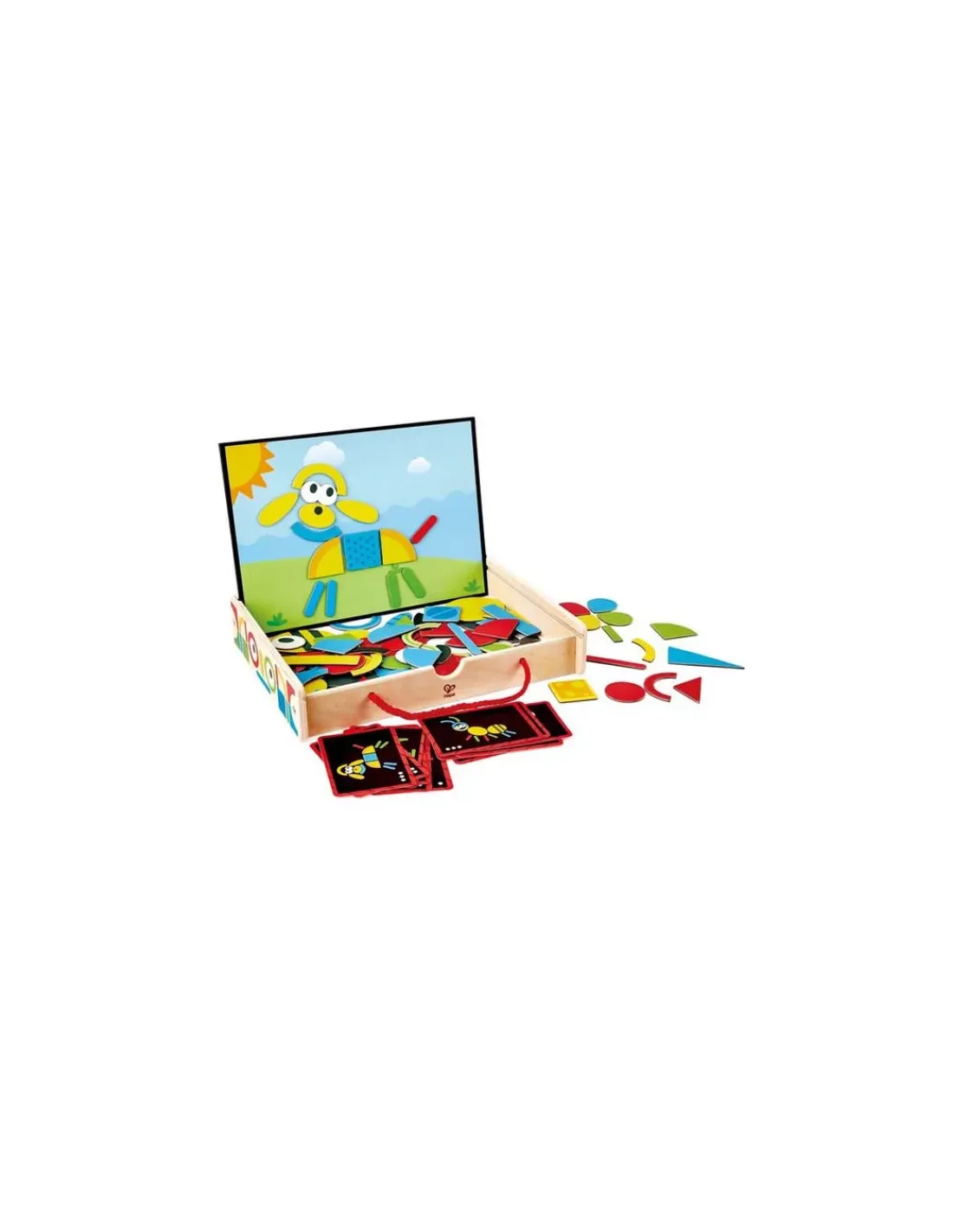 Découvrez le coffret artistique magnétique de Hape, un jeu éducatif magnétique pour les enfants à partir de 3 ans avec des magnets. Choisissez parmi 91 formes magnétiques et placez-les sur le tableau représenté sur le couvercle intérieur, ou collez-les sur la face arrière vierge pour créer tout ce que vous voulez!