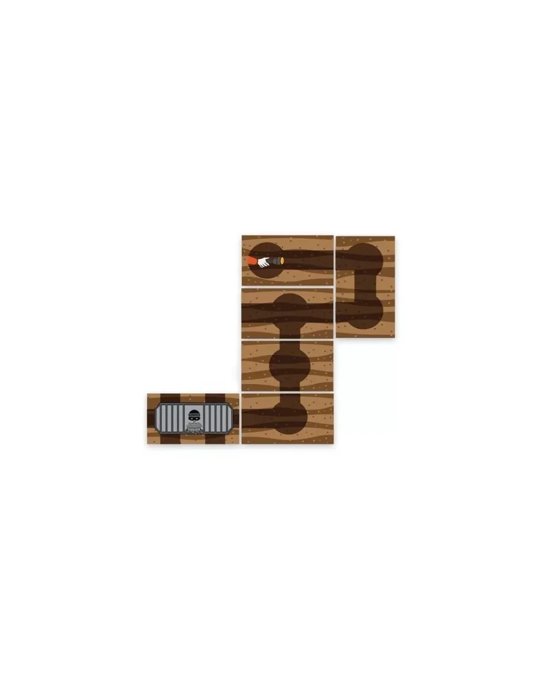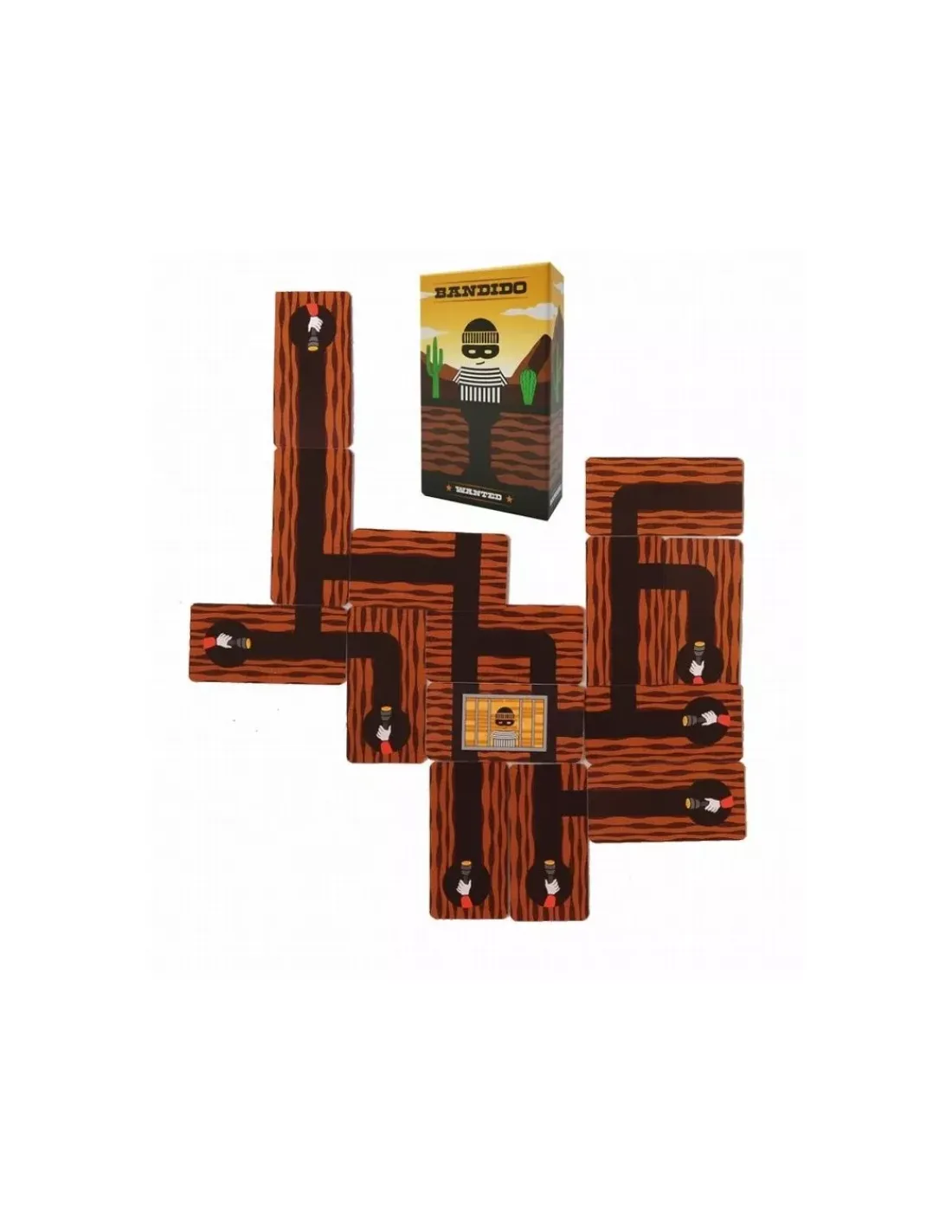 Découvrez le jeu Bandido de Helvetiq, un jeu coopératif dès 6 ans où vous devrez essayer de bloquer tous les issus des tunnels afin que le fuyard retourne dans sa cellule.