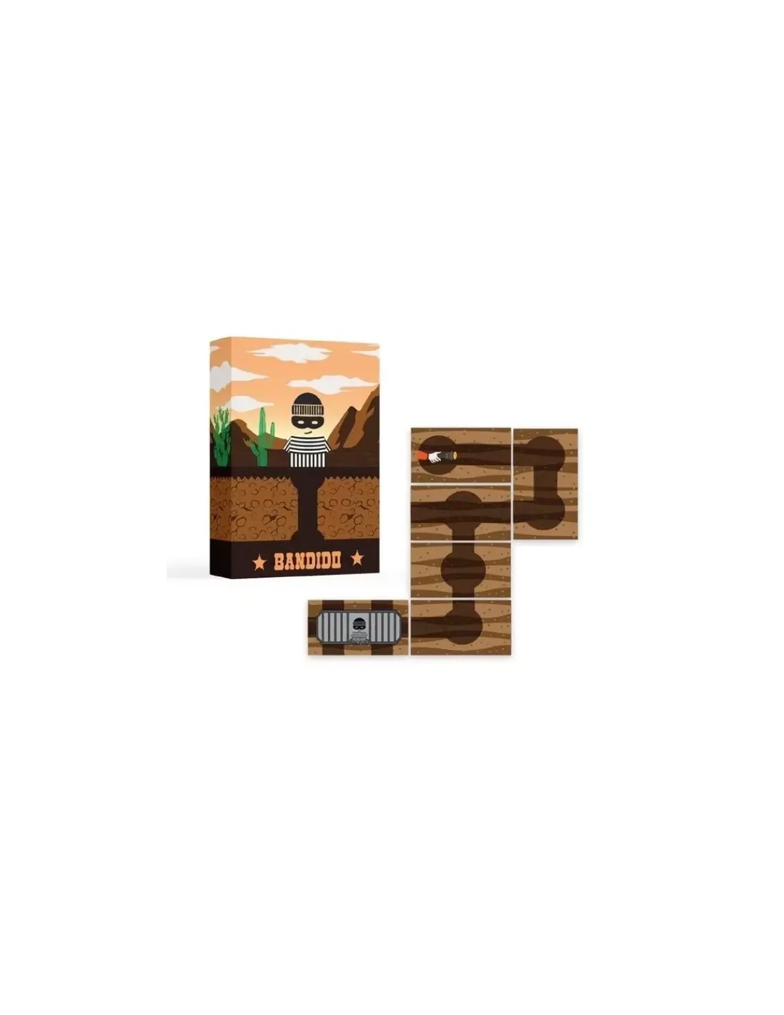 Placez au centre de la table la super-carte de départ avec ses 6 sorties et distribuez 3 cartes à chaque joueur. A son tour, chaque joueur choisie une de ses cartes en la connectant aux tunnels existants, et si possible en réduisant le nombre total de sorties puis refait sa main. Si toutes les issues sont bloquées avant que la pile soit épuisée, vous avez tous gagné sinon, viva bandido!